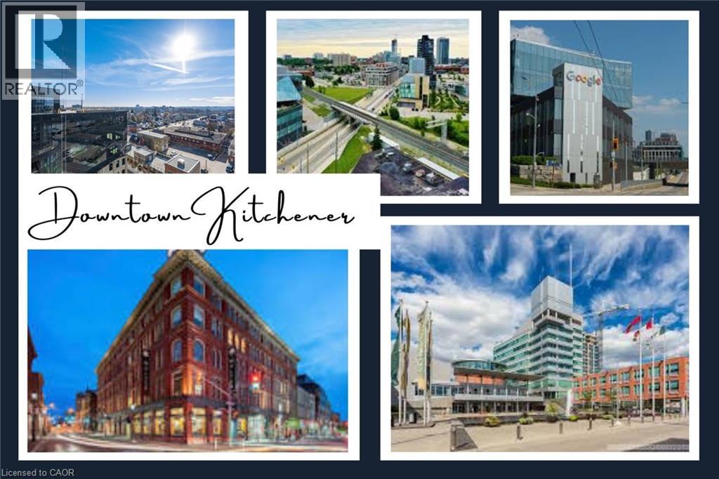 Exceptional 1-bedroom + den condo with 1 underground parking spot! Tower 3 of the Garment Street Condos, ideally located in the heart of Kitchenerâs Innovation District. This well-designed suite offers upscale, low-maintenance living just steps to Downtown Kitchener, Victoria Park, shops, restaurants, and transit, including the ION Light Rail and future LRT hub. Easy access to the GO Train and major employers such as Google, UW Health Sciences Campus, D2L, Deloitte, and The Tannery. With excellent walkability and bike access, this location is perfect for professionals who want convenience without relying on a car. The building features outstanding amenities including a resort-style pool, fitness centre, yoga studio, sports court, theatre, entertainment room with kitchen, landscaped rooftop terrace with BBQs, pet run and wash area, secure car and bike parking, and wireless internet throughout. This unit is filled with natural light from floor-to-ceiling windows and offers an open-concept layout with high ceilings and engineered flooring. The modern kitchen includes contemporary cabinetry, granite countertops, stainless steel appliances, stylish backsplash, and a peninsula ideal for everyday living or entertaining. The spacious bedroom features a wall-to-wall closet, complemented by a generous 4-piece wheelchair-accessible bathroom. In-suite laundry adds everyday convenience. This well-managed building in an unbeatable central location is ideal for professionals seeking a quality lease opportunity. Contact your agent to arrange a viewing. (id:53732)