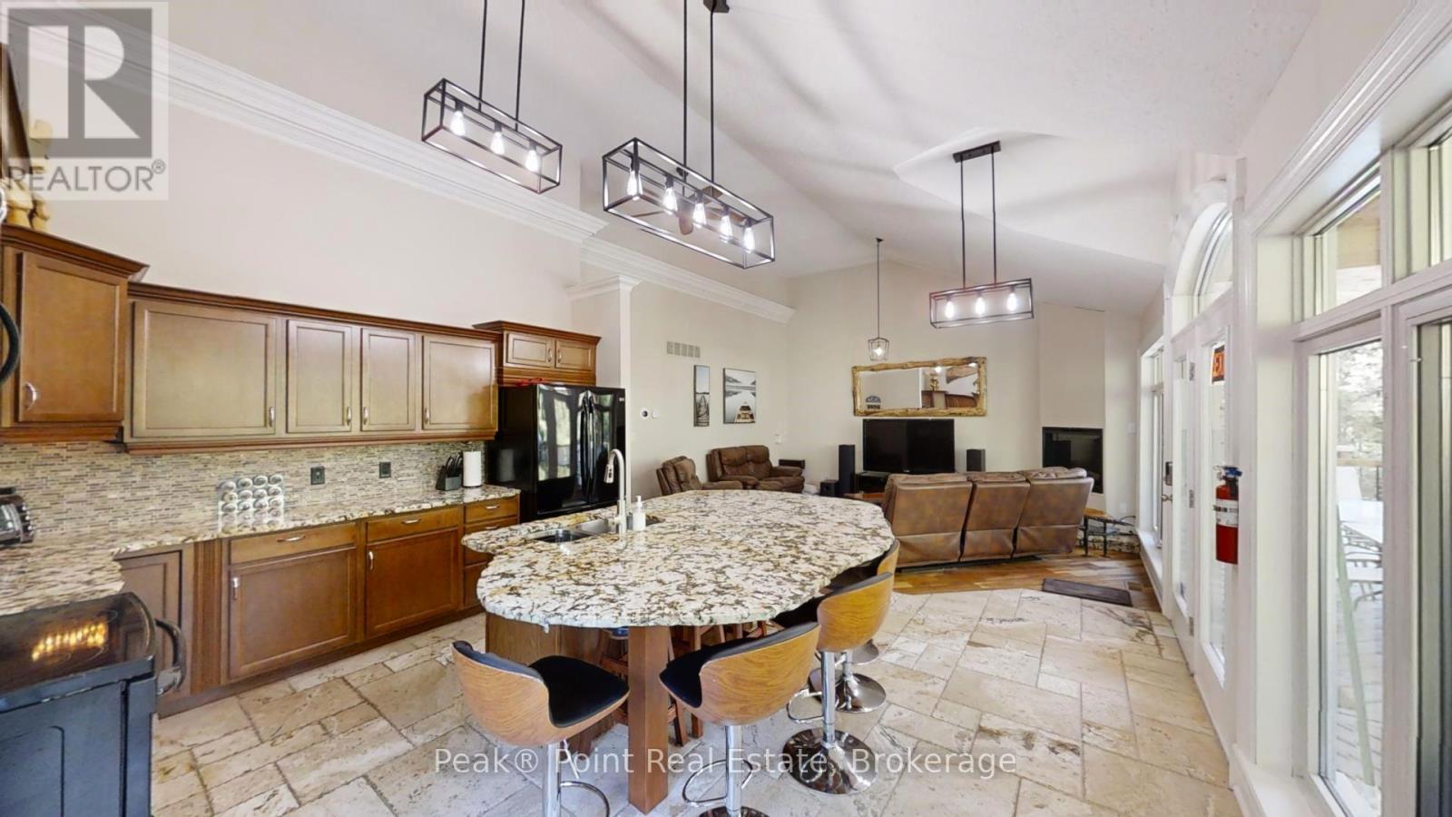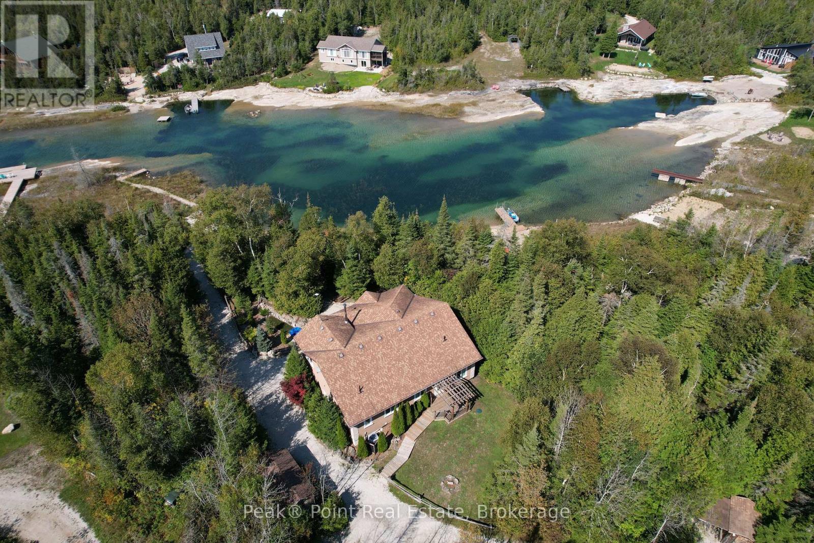Looking for a Super Private, Turn-Key Lakefront Retreat with Sand Beach? This stunning 1900 square foot, four-season Bruce Peninsula retreat is sure to please! Here you're nestled on the shores of Lake Huron, tucked away on an extremely private treed lot. Follow the 450+ foot private drive to discover a true waterfront dream home! For the boating enthusiast, you can enjoy full access to the open waters of Lake Huron just minutes up the deep, crystal-clear inlet channel. This property's beautiful shoreline has a newly reconstructed waterfront space which includes sandy beach, over-sized deck, floating dock, sitting areas & firepit. Enjoy the clear, warm waters of Lake Huron whether you love to swim, fish, kayak, or canoe. The protected inlet offers a protected environment to dock bigger boats closer to shore. Tons of room to enjoy outdoor living here in any season! Coming back to the house, the large covered upper deck is a beautiful spot to entertain family & friends. All of the various decks & walkways have been recently upgraded. Inside you'll fall in love with the bright & airy living space offered here! 5 Bed/2.5 Bath. Gorgeous Kitchen w/granite counters, centre island & beautiful cupboards. Lovely Great Room with a panoramic wall of windows & a huge abundance of natural light. Beautifully updated main 4pc. Bath. Large upper-level master bedroom w/3pc. Ensuite. Bonus lower-level Rec Room with walk-out. This property features a TON of recent upgrades including: entirely new water treatment system, newer heat pump & forced air heating & cooling, new beds, newly painted throughout, new family room flooring, all new toilets & faucets, new outdoor furniture & BBQ, new microwave, countertop oven, small appliances & kitchen stools, Google security camera system, new full size washer & dryer, all new light fixtures throughout much more! Check Out the Additional Links for More Pictures! (id:6418)