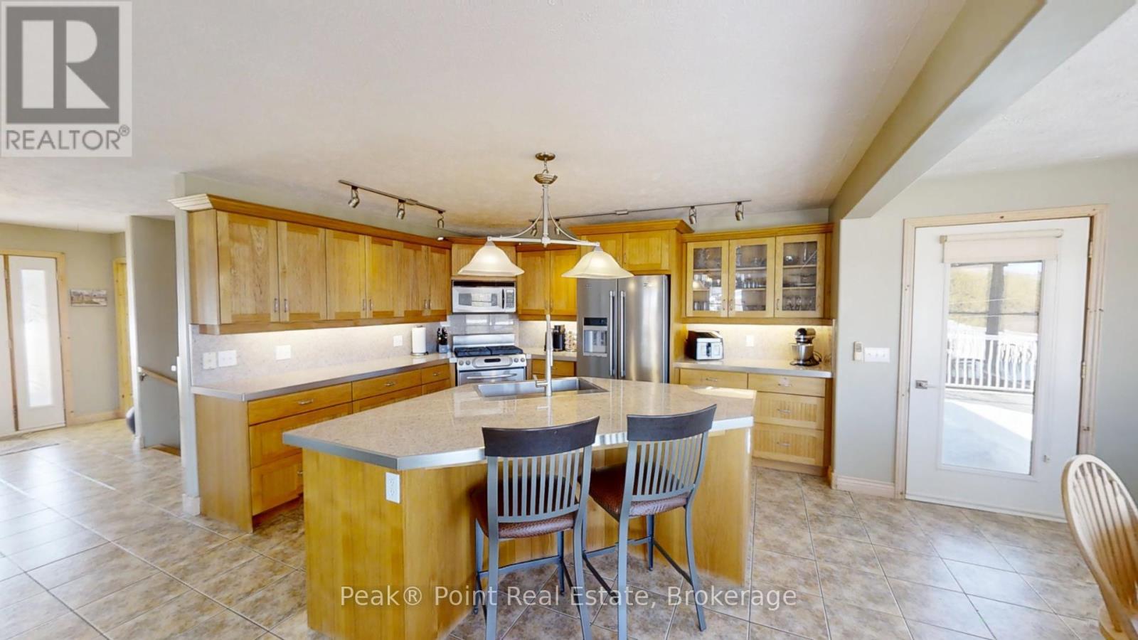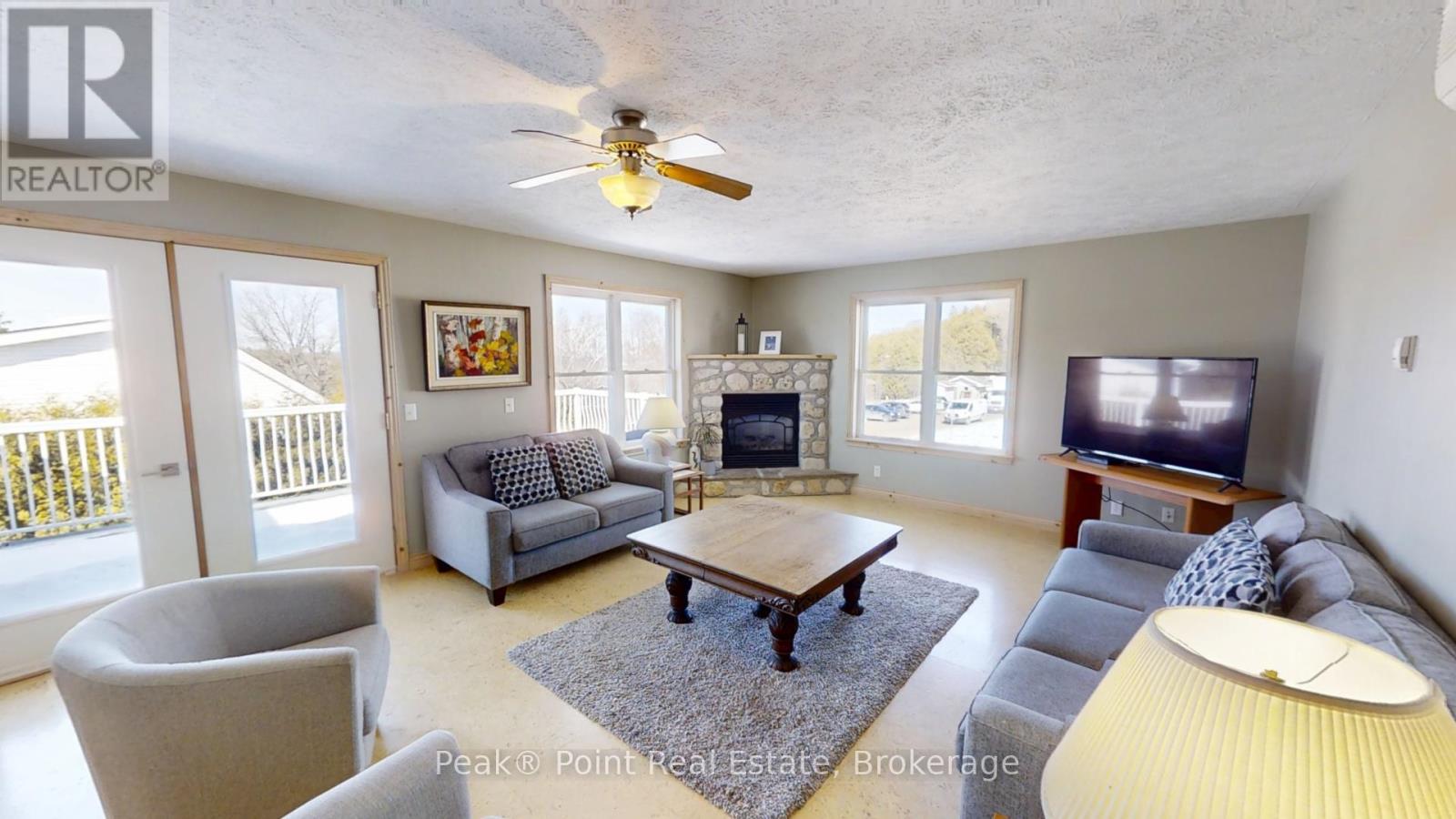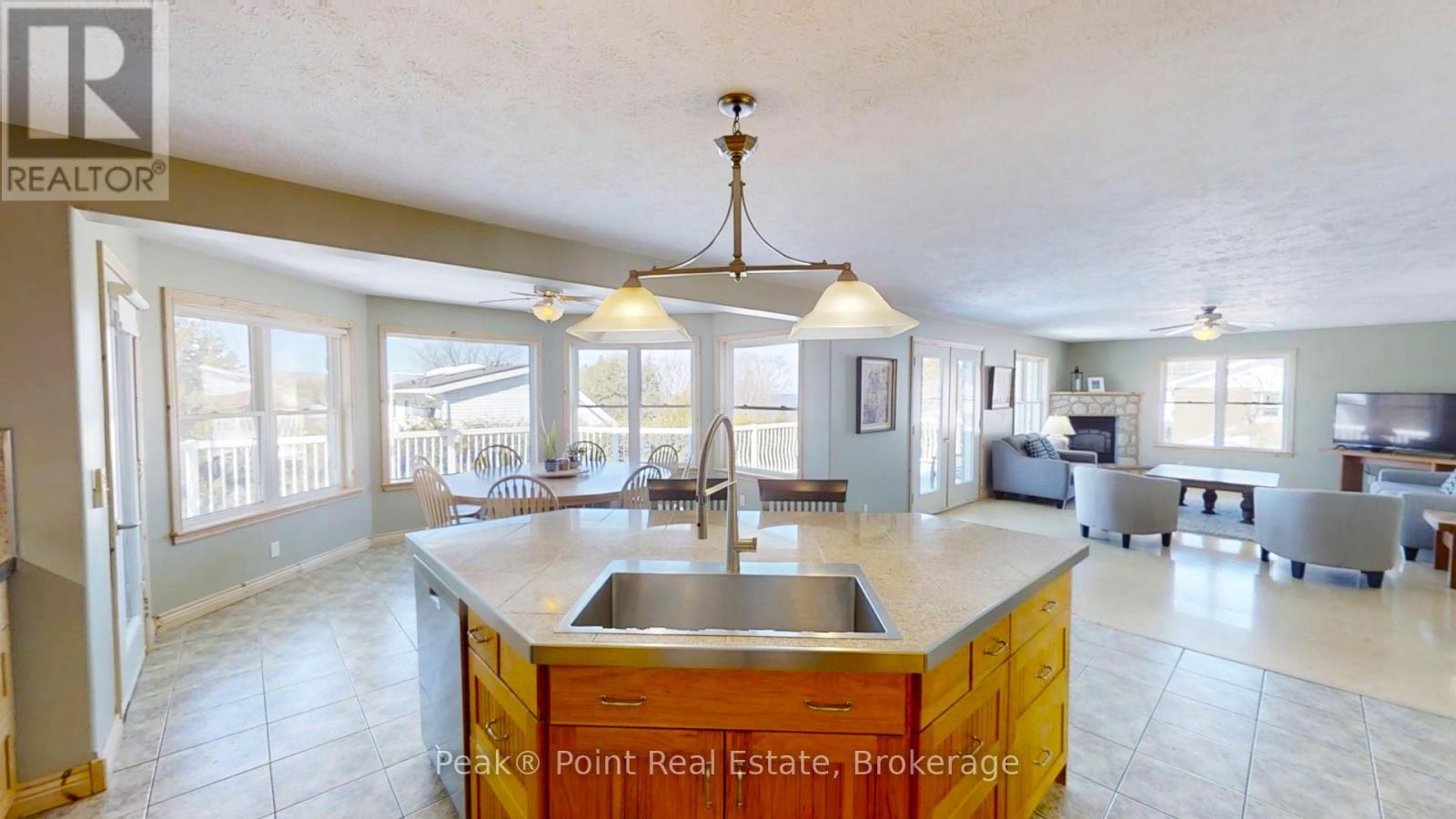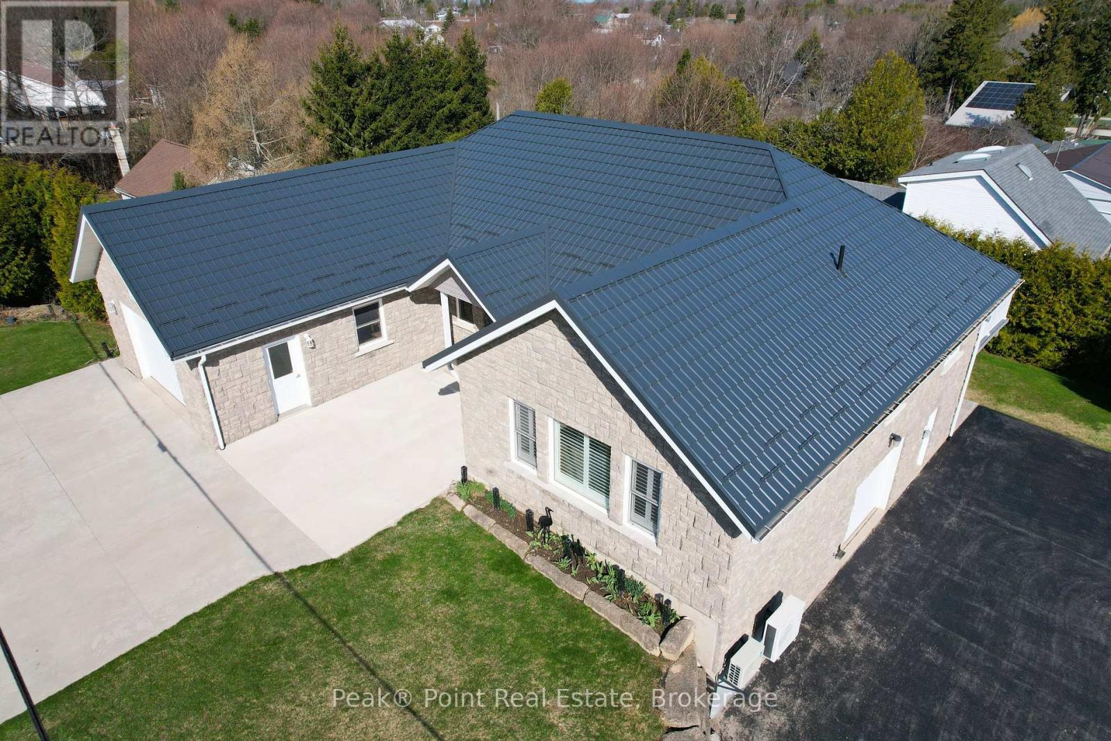 Stunning 5 Bed, 3.5 Bath Bungalow with Above-Grade Walkout and Impressive Upgrades in Lions Head!This exceptional custom bungalow, nestled in the heart of Lions Head with easy access to the Bruce Trail and a pleasant walk to the sand beach, has been meticulously updated with over $80,000 in essential upgrades, including a new high-quality steel roof, on-demand hot water system, and brand-new major appliances.Designed for modern living, the main floor features an open-concept kitchen, dining, and living area perfect for entertaining. The kitchen is a chefs dream with a large center island, stainless steel appliances, built-in dishwasher, and a spacious walk-in pantry. The living room, with its beautiful propane stone fireplace, is perfect for relaxing, and the dining area offers access to a large deck with serene views of the bay.The oversized primary bedroom includes a private ensuite bath, while the remaining two bedrooms, full bath, office, and main-floor laundry complete this well-designed layout. Comfort is ensured with two ductless A/C units, high-speed fibre Wi-Fi, and a whole-home generator for peace of mind.The finished lower level includes 1,100 sq. ft. of additional living space, featuring two bedrooms, a full bath, a large family room, and a hot tub alcove with walk-out access to the backyard.Outside, the property provides abundant parking options, including an oversized attached garage and a second garage/workshop with in-floor heating, a two-piece bath, and a massive multipurpose room ideal for hobbies or a home-based business.Whether you're looking for a year-round family home, an upscale vacation property, or a retirement retreat, this property offers the flexibility to suit your needs. (id:6418)
