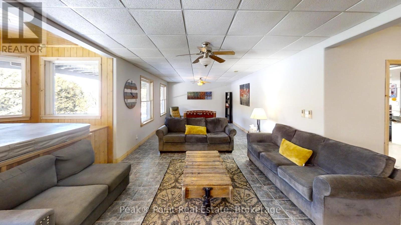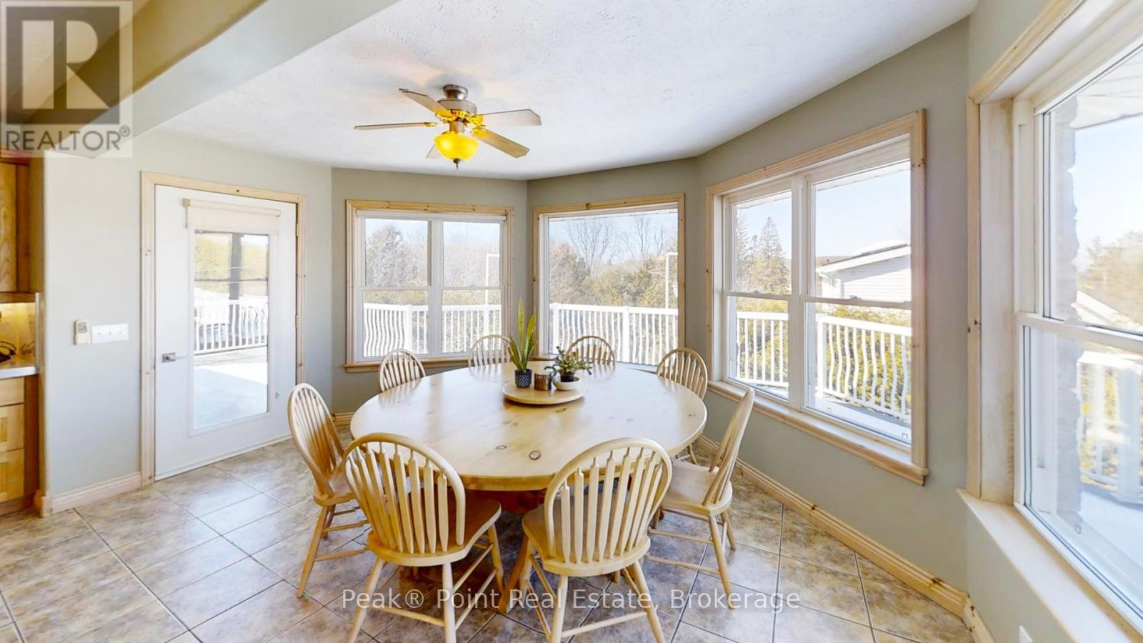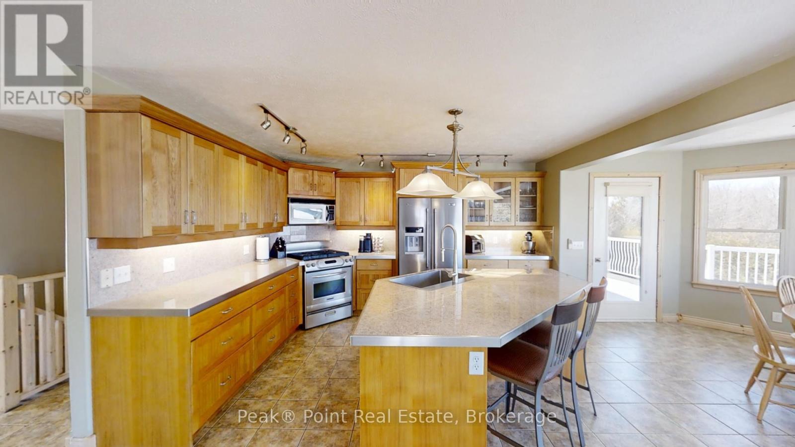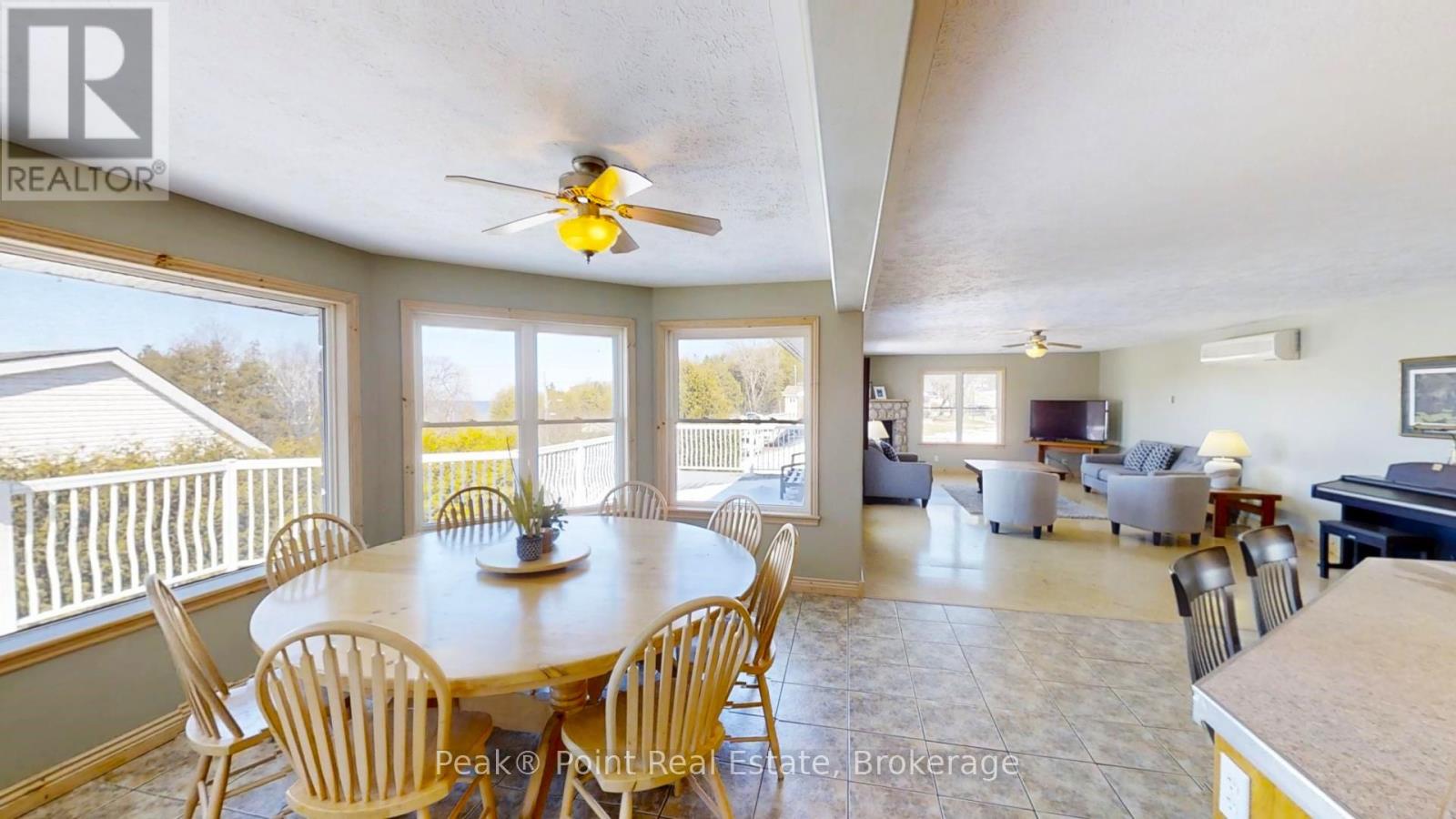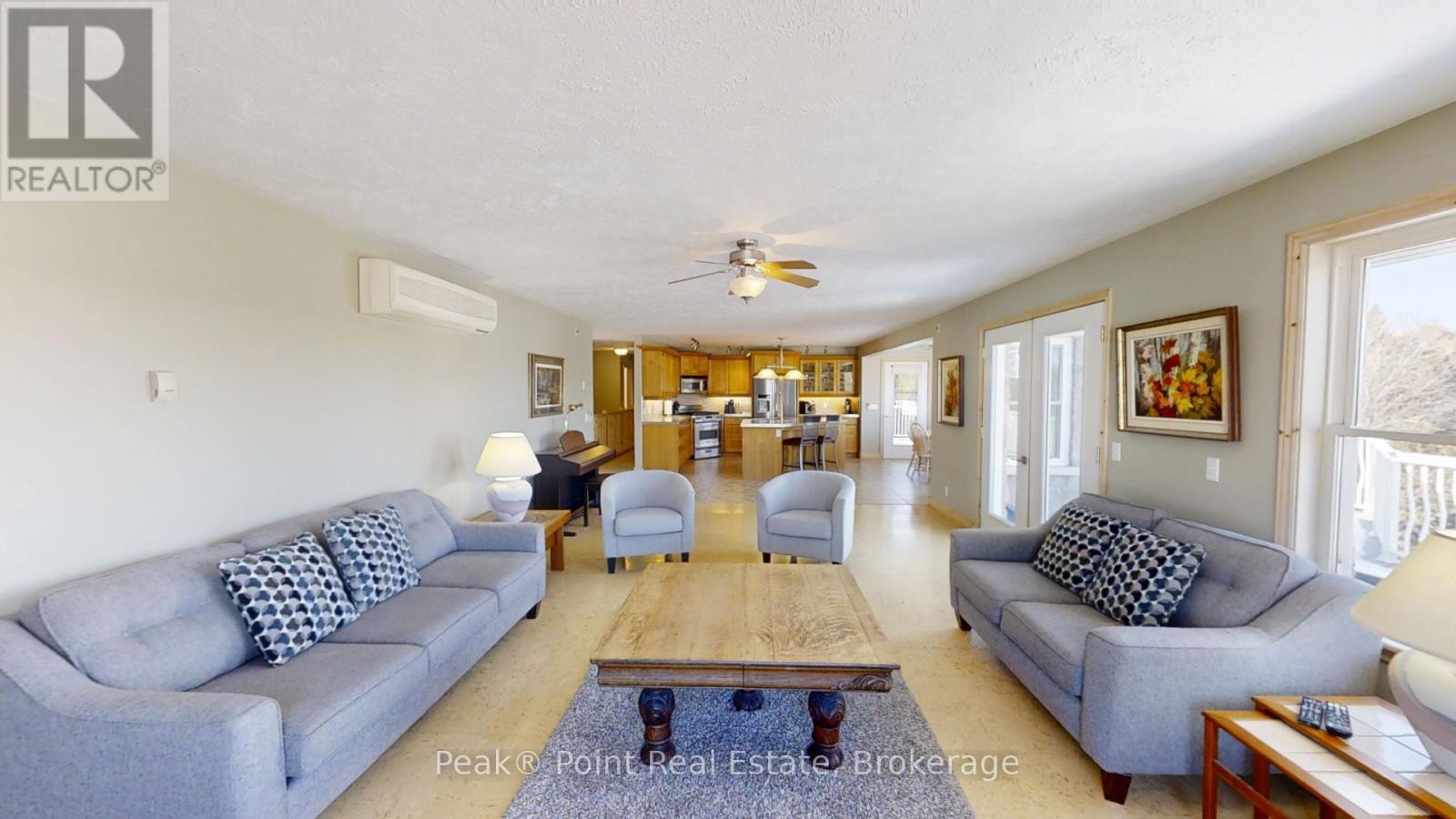 Stunning 5 Bed, 3.5 Bath Bungalow with Above-Grade Walkout and Impressive Upgrades in Lions Head!This exceptional custom bungalow, nestled in the heart of Lions Head with easy access to the Bruce Trail and a pleasant walk to the sand beach, has been meticulously updated with over $80,000 in essential upgrades, including a new high-quality steel roof, on-demand hot water system, and brand-new major appliances.Designed for modern living, the main floor features an open-concept kitchen, dining, and living area perfect for entertaining. The kitchen is a chefs dream with a large center island, stainless steel appliances, built-in dishwasher, and a spacious walk-in pantry. The living room, with its beautiful propane stone fireplace, is perfect for relaxing, and the dining area offers access to a large deck with serene views of the bay.The oversized primary bedroom includes a private ensuite bath, while the remaining two bedrooms, full bath, office, and main-floor laundry complete this well-designed layout. Comfort is ensured with two ductless A/C units, high-speed fibre Wi-Fi, and a whole-home generator for peace of mind.The finished lower level includes 1,100 sq. ft. of additional living space, featuring two bedrooms, a full bath, a large family room, and a hot tub alcove with walk-out access to the backyard.Outside, the property provides abundant parking options, including an oversized attached garage and a second garage/workshop with in-floor heating, a two-piece bath, and a massive multipurpose room ideal for hobbies or a home-based business.Whether you're looking for a year-round family home, an upscale vacation property, or a retirement retreat, this property offers the flexibility to suit your needs. (id:6418)