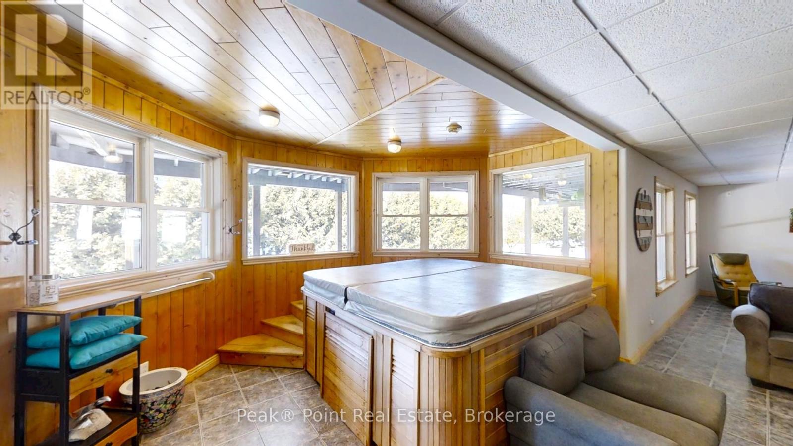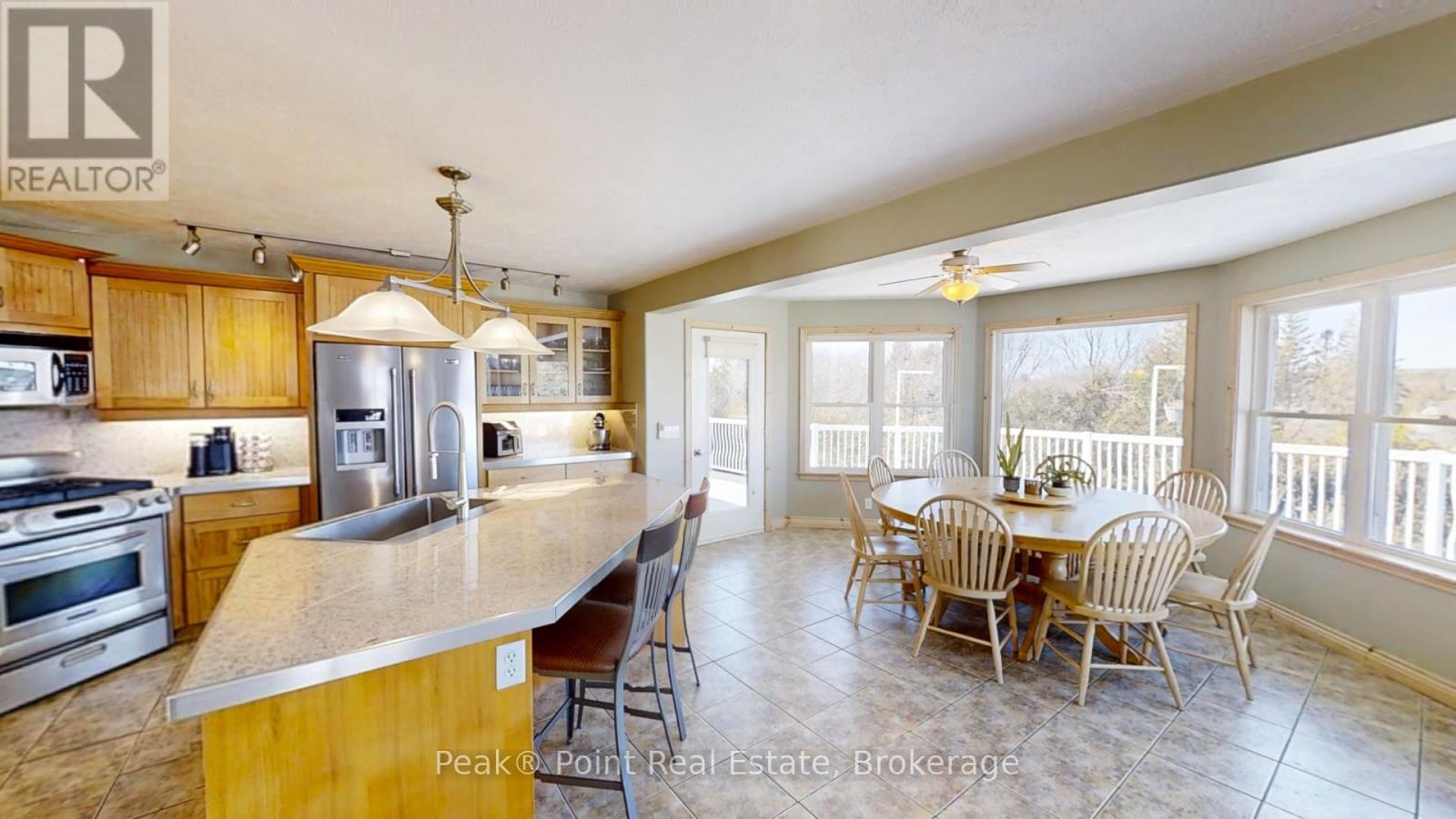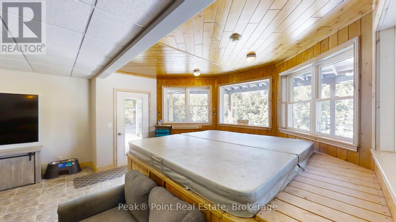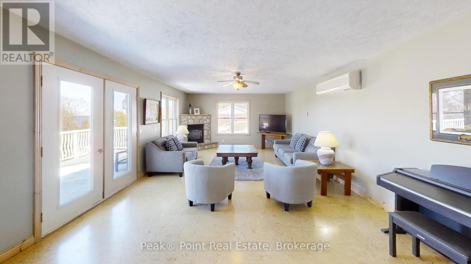 Stunning 5 Bed, 3.5 Bath Bungalow with Above-Grade Walkout and Impressive Upgrades in Lions Head!This exceptional custom bungalow, nestled in the heart of Lions Head with easy access to the Bruce Trail and a pleasant walk to the sand beach, has been meticulously updated with over $80,000 in essential upgrades, including a new high-quality steel roof, on-demand hot water system, and brand-new major appliances.Designed for modern living, the main floor features an open-concept kitchen, dining, and living area perfect for entertaining. The kitchen is a chefs dream with a large center island, stainless steel appliances, built-in dishwasher, and a spacious walk-in pantry. The living room, with its beautiful propane stone fireplace, is perfect for relaxing, and the dining area offers access to a large deck with serene views of the bay.The oversized primary bedroom includes a private ensuite bath, while the remaining two bedrooms, full bath, office, and main-floor laundry complete this well-designed layout. Comfort is ensured with two ductless A/C units, high-speed fibre Wi-Fi, and a whole-home generator for peace of mind.The finished lower level includes 1,100 sq. ft. of additional living space, featuring two bedrooms, a full bath, a large family room, and a hot tub alcove with walk-out access to the backyard.Outside, the property provides abundant parking options, including an oversized attached garage and a second garage/workshop with in-floor heating, a two-piece bath, and a massive multipurpose room ideal for hobbies or a home-based business.Whether you're looking for a year-round family home, an upscale vacation property, or a retirement retreat, this property offers the flexibility to suit your needs. (id:6418)