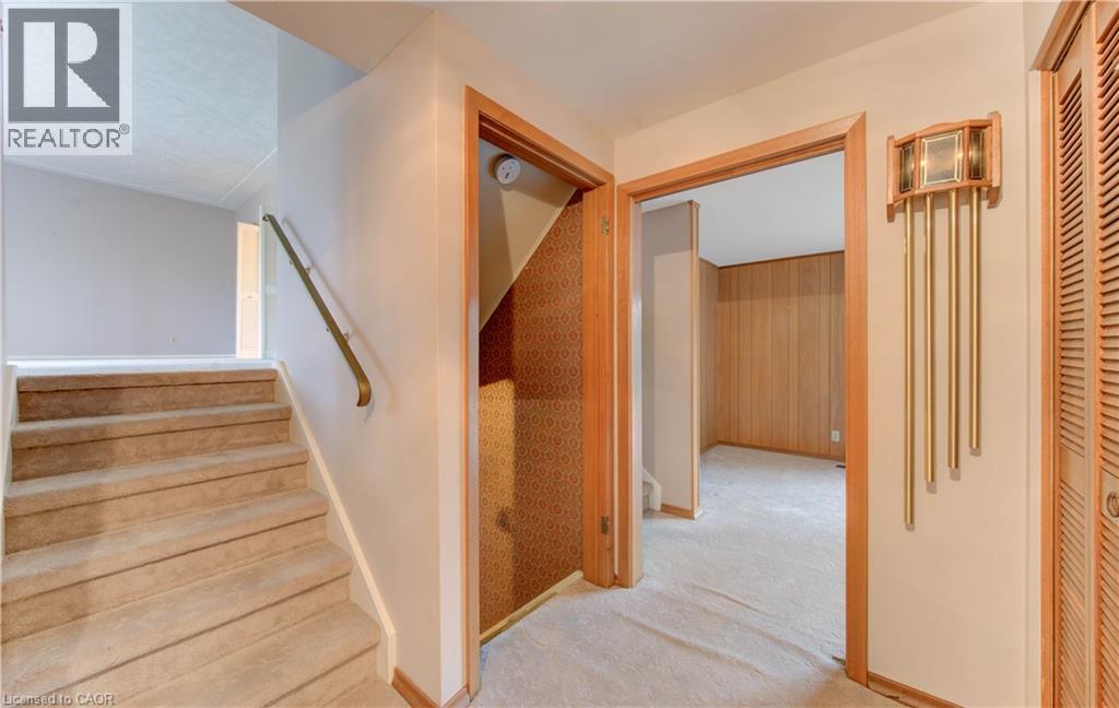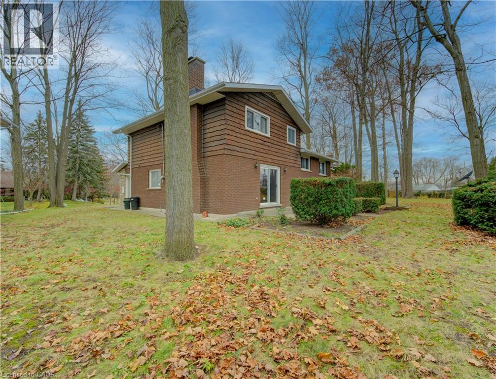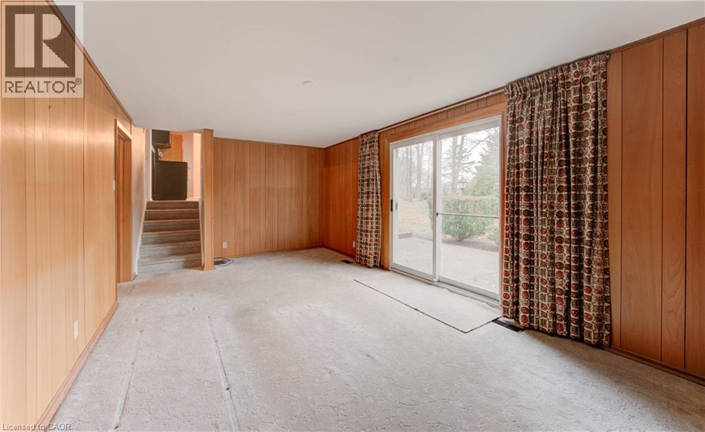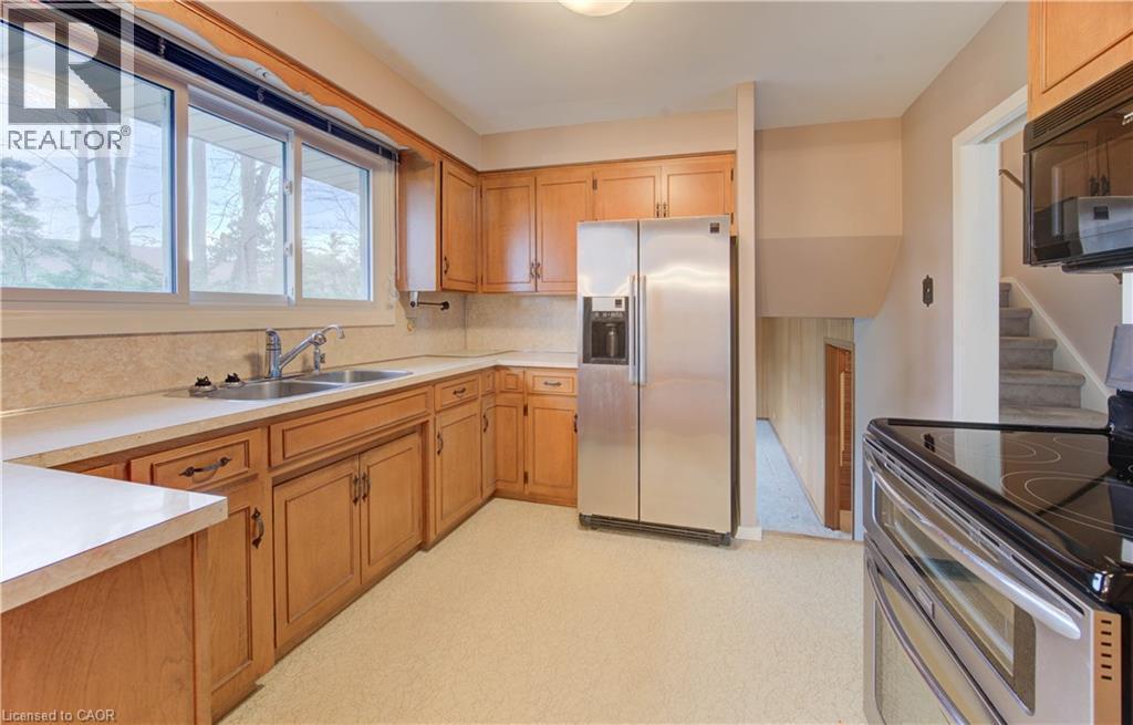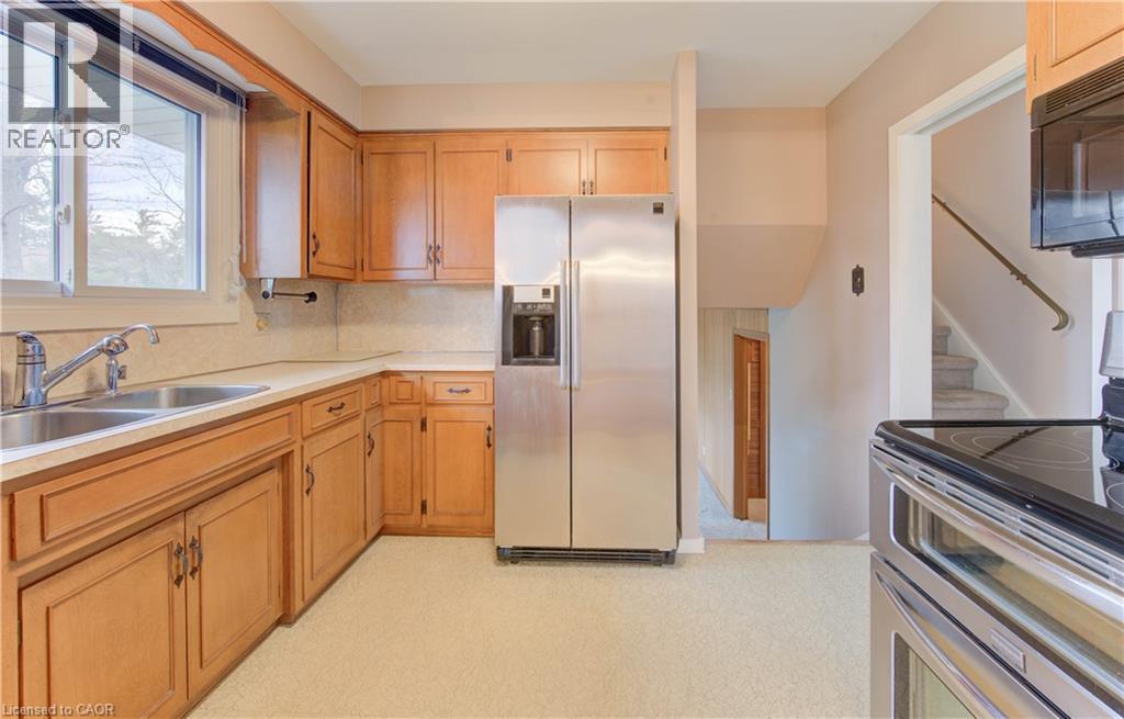 OPEN HOUSE: SATURDAY 1â3 PM Step inside this charming 3-bedroom sidesplit, offering over 2,000 sq. ft. of comfortable living space on a massive pie-shaped, wooded lot. With 1 full bath and 2 half baths, this home gives you plenty of room to personalize and make your own. Enjoy a bright front living room with a bay window, a separate dining room, and a cozy family room with a wood-burning fireplace and sliders that open to the backyard and patio. A fully finished rec room adds even more functional space. Outside, the oversized pie-shaped yard is a true standout, perfect for kids, pets, gardens, summer entertaining, or future expansion. Updates include all windows (2007â2017). Located in an established, highly desirable neighbourhood just minutes to Stanley Park Mall, schools, parks, trails, transit, and every essential amenity. Gas heat, A/C, and a single-car garage complete the package. (id:53732)