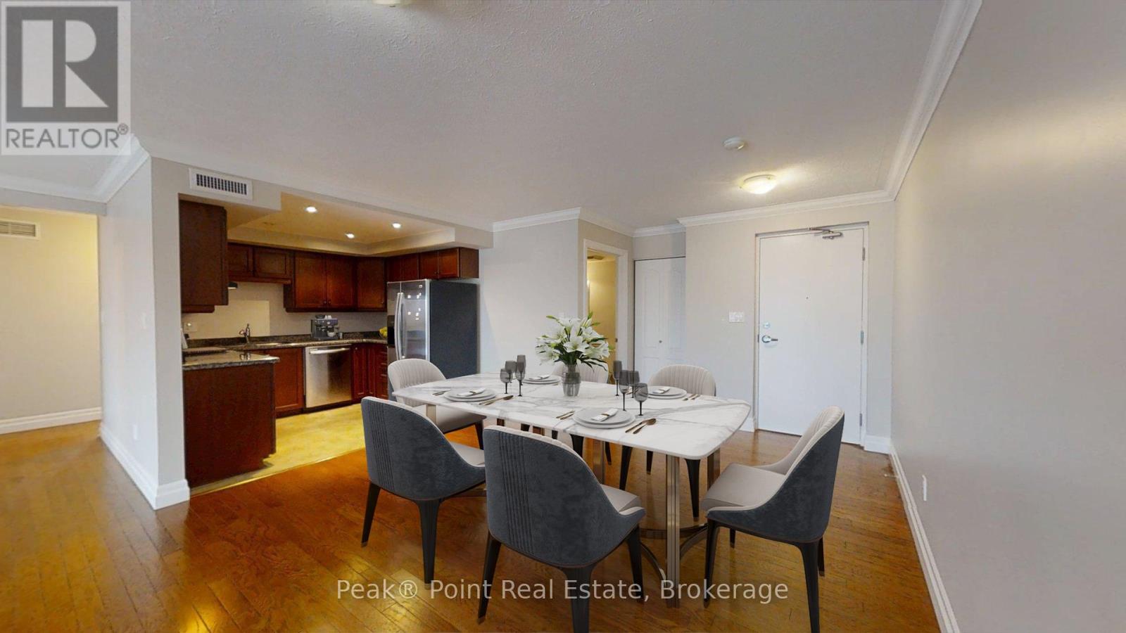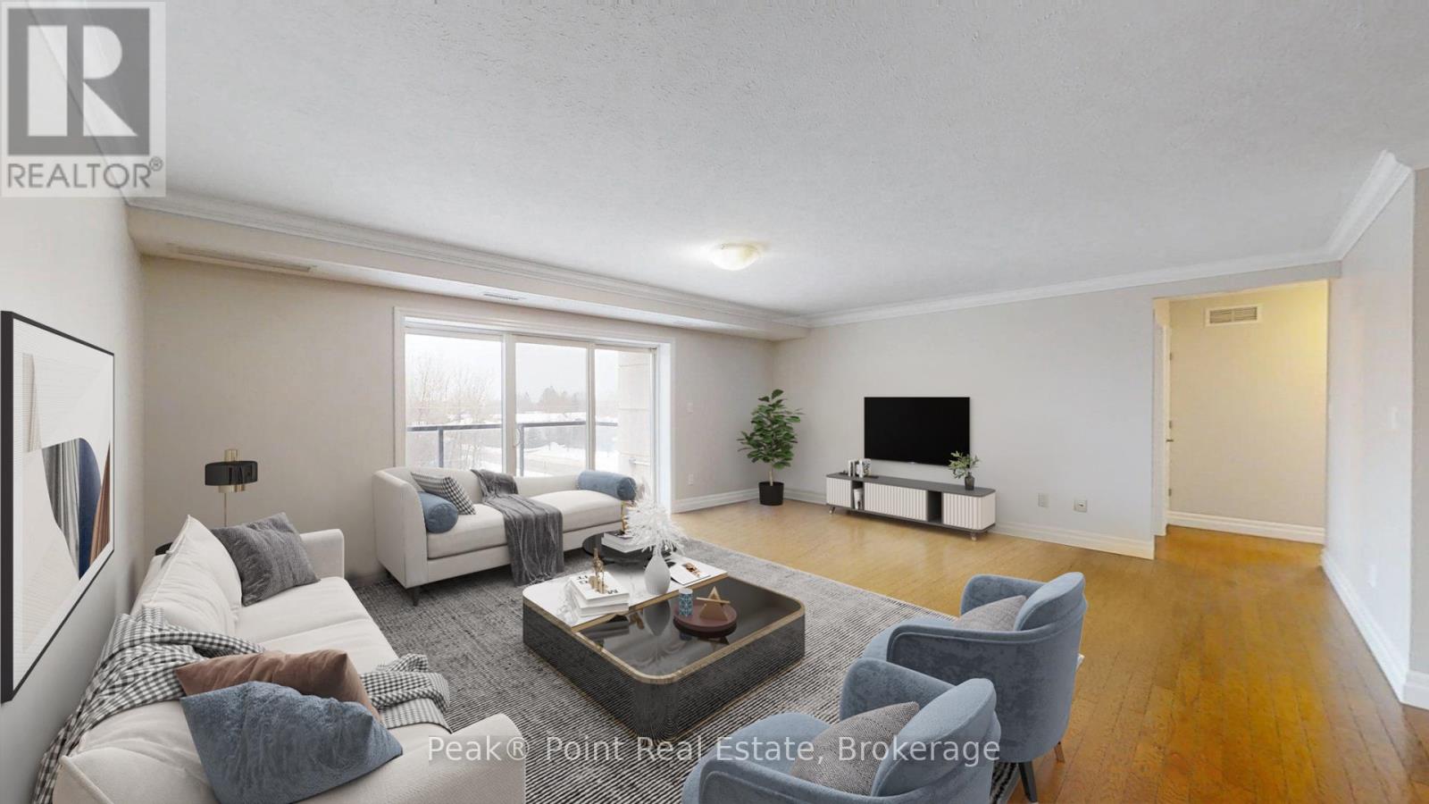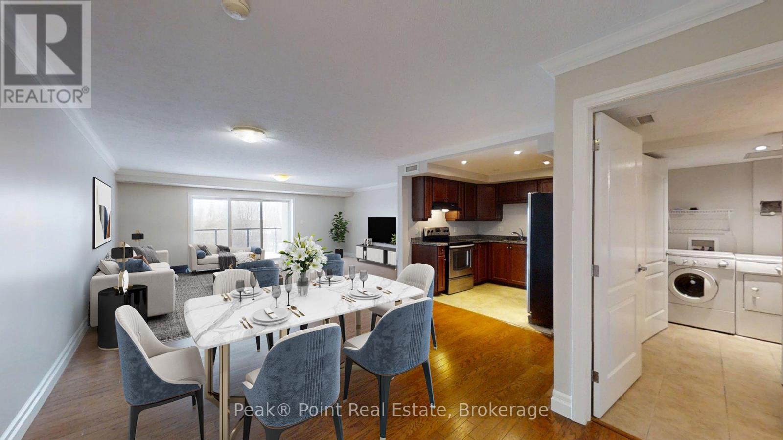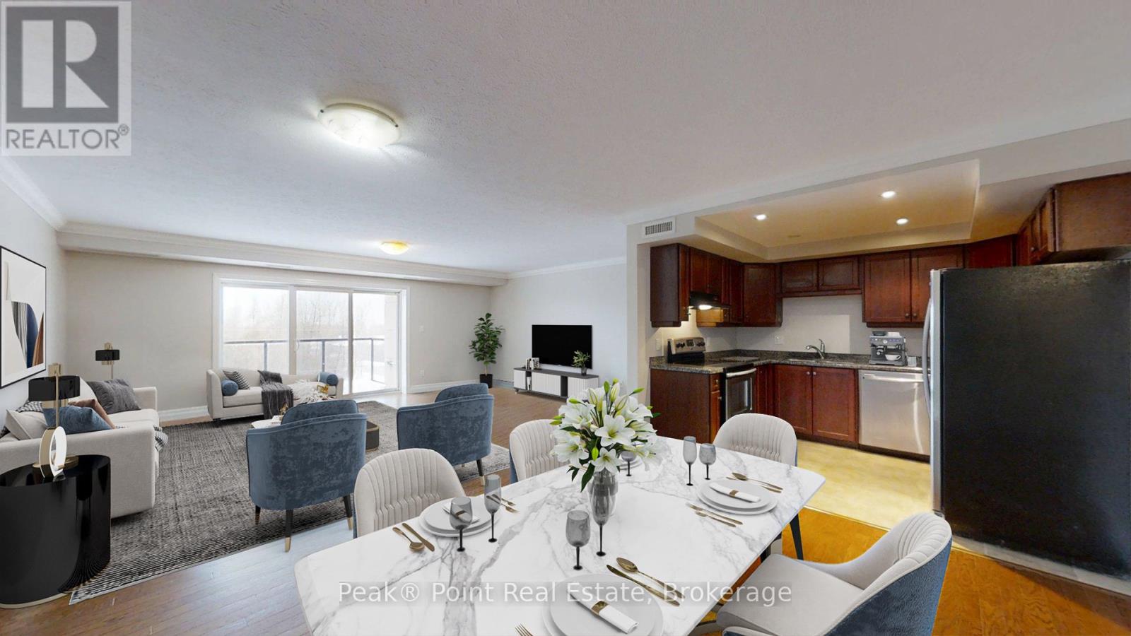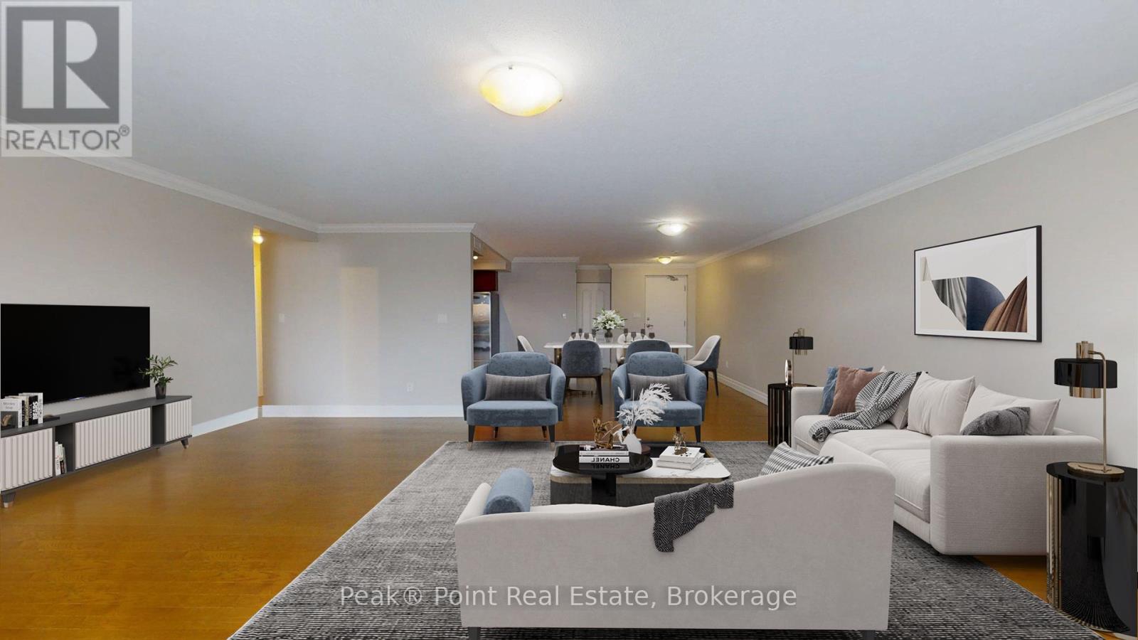 **Condo Interior Photos Virtually Staged**This well-appointed Chantry Place Southampton condo offers nearly 1100 square feet of thoughtfully designed living space. The unit features two bedrooms, including a large primary bedroom and 1.5 bathrooms. The open-concept layout seamlessly integrates the kitchen, living room, and dining room spaces creating a spacious and inviting atmosphere.The kitchen is a highlight, boasting lovely cabinetry, granite countertops, and stainless-steel appliances. The living area is generously proportioned, with ample space for both dining space and living room relaxation. The crown molding in these spaces contribute to the aesthetic of the space. The condo also has abundant natural lighting, which enhances the sense of openness. Hardwood flooring runs throughout the main living areas and bedrooms, adding warmth and sophistication. The main bathroom is 4 pc. & features a separate stand-up shower & tub. The neutral color palette of the living spaces provides a versatile backdrop for various decor styles. With its thoughtful design and convenient location, this condo offers a comfortable and stylish living environment in the heart of Southampton.There are many amenities that seal the deal for you with this Chantry Place unit including: dedicated interior parking for your unit in the heated garage w/remote controlled door, a 6' X 8' storage unit, lots of visitor parking, fully equipped gym & showers + w/common area kitchen + rooftop common area patio w/fantastic views.Condo living offers a ton of convenience, including leaving leaf raking and snow shovelling behind!This lovely spot might be your new next chapter! (id:6418)