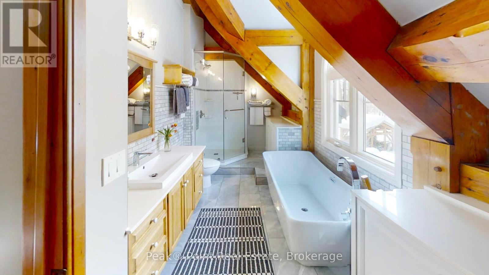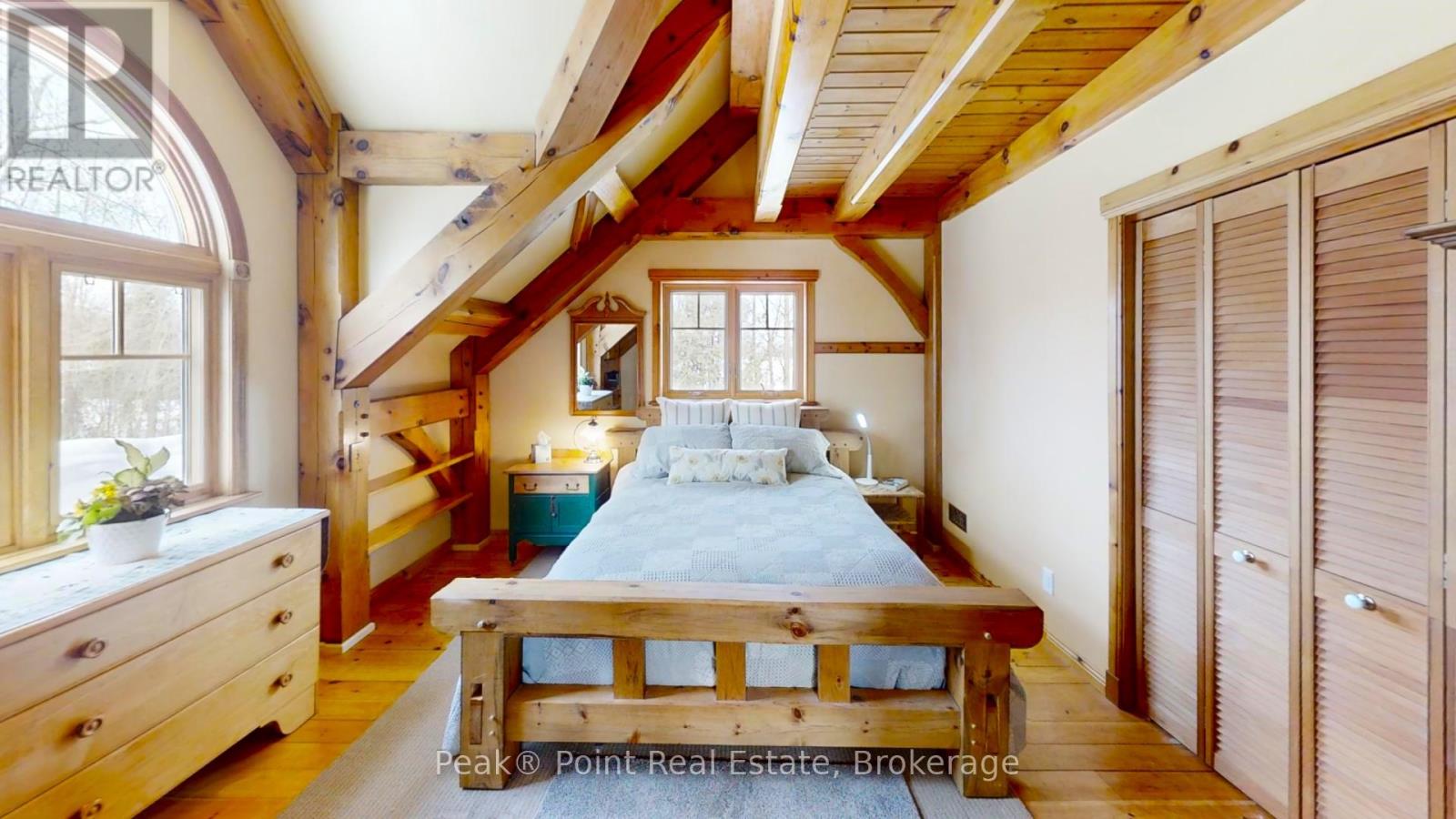 Looking for Unique & Beautiful Country Living? Here youre located on the outskirts of Owen Sound, on a magical 4.4-acre property. Less than a 5-minute drive into Owen Sounds east side, just 5 minutes to the Leith Beach, 8 minutes to the Hibou Conservation Area, and 40 minutes from your driveway to being on the hill at Blue Mountain. The extremely private setting features a stunning lot with extensive perennial flower gardens, a fenced vegetable garden, horseshoe pits, beautiful mature trees & shrubs, a fully functioning chicken coop, extensive walking trails & so much more! The gorgeous natural setting offers various wildlife sightings throughout the seasons. Lots of open space for kids & dogs alike to run, play & enjoy. The expansive lot offers an abundance of room for kids to explore, not to mention great spots for tree forts and camping. Coming inside youll fall in love with the authentic 100% Custom Timber Frame construction, high quality workmanship, thoughtful finishes and attention to detail. The beautiful Cherry Custom kitchen features all brand-new stainless-steel appliances (with extended warranties), centre island & granite counters. Many recent updates including: main floor paint, new top of the line water filtration system, updated light fixtures, switches & outlets, 2021 new woodstove, 2nd level bathroom reno 2024, laundry reno 2024, on demand hot water 2024, new air handler, many replaced windows, new exterior doors, new wood flooring in tv room 2024, new glass railing system on deck, new brickwork on porch posts & behind woodstove, new stairway exit from basement (for easy access) & much more! (id:6418)