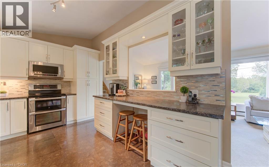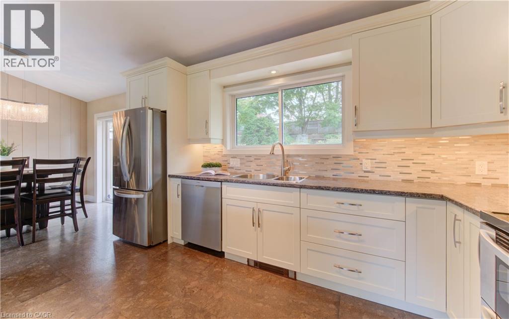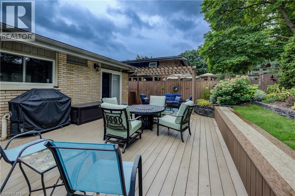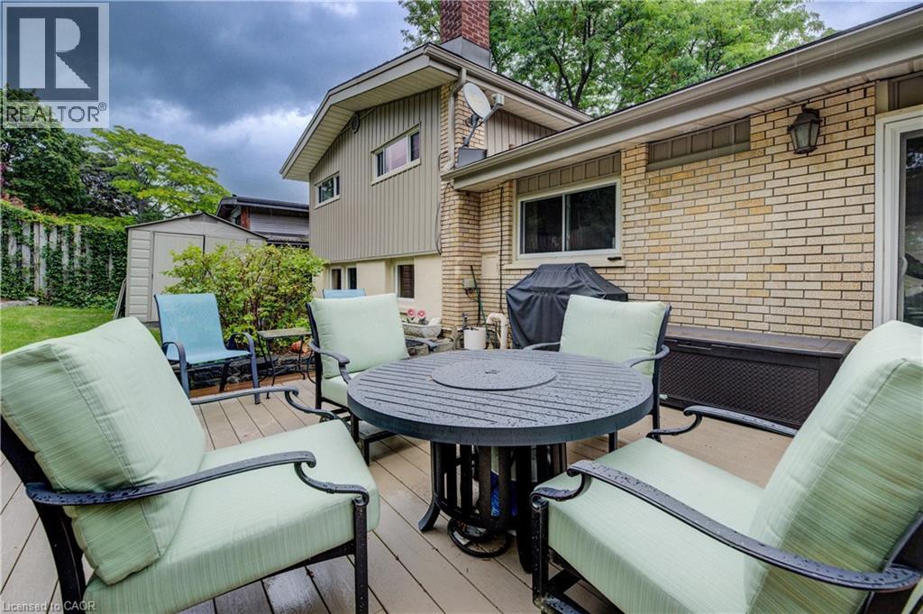 Highly sought-after Manchester Road! Here’s your opportunity to own a home in this desirable neighbourhood. The first thing you’ll notice is the large resurfaced driveway (2018), offering plenty of parking. The single-car garage has been converted into additional living space—perfect for storage, a home office, or hobby room—but can easily be returned to a garage if desired. This charming 3-bedroom, 1.5-bath side-split looks onto greenspace with a playground nearby. Bright windows fill the home with natural light, while the renovated kitchen is a true highlight, featuring large window overlooking the tiered, private backyard. Enjoy entertaining outdoors with the updated composite deck, complete with pergola and privacy. Upstairs, you’ll find three generous bedrooms and a beautifully updated main bath (2021). The cozy family room is anchored by a fieldstone fireplace, now converted to gas for comfort and convenience. The lower level offers a workshop area and a well-placed laundry room. All this in a fantastic location close to shopping, schools, the expressway, and so much more. (id:53732)