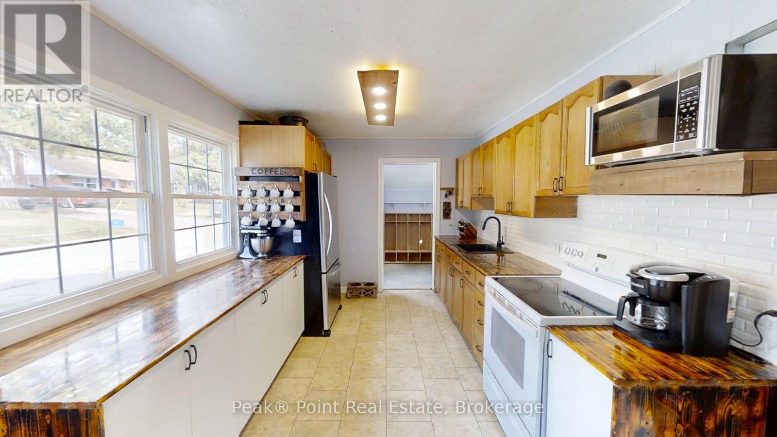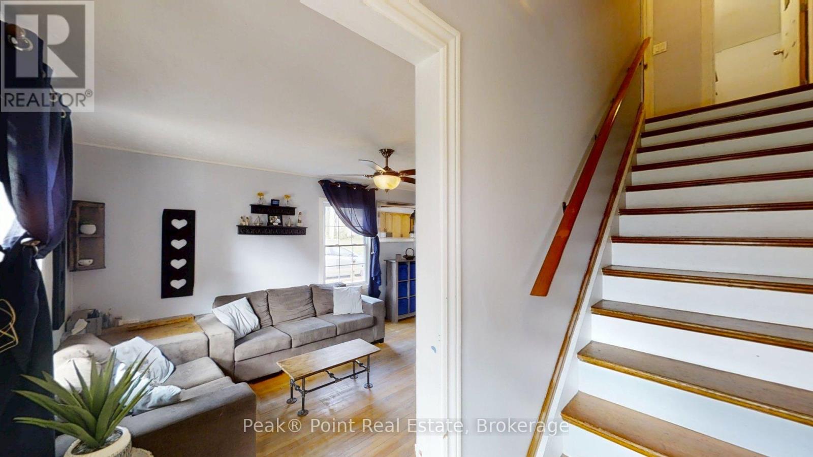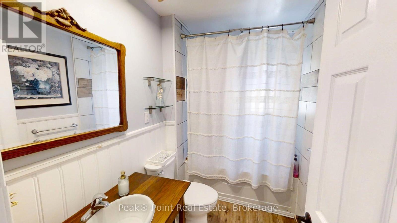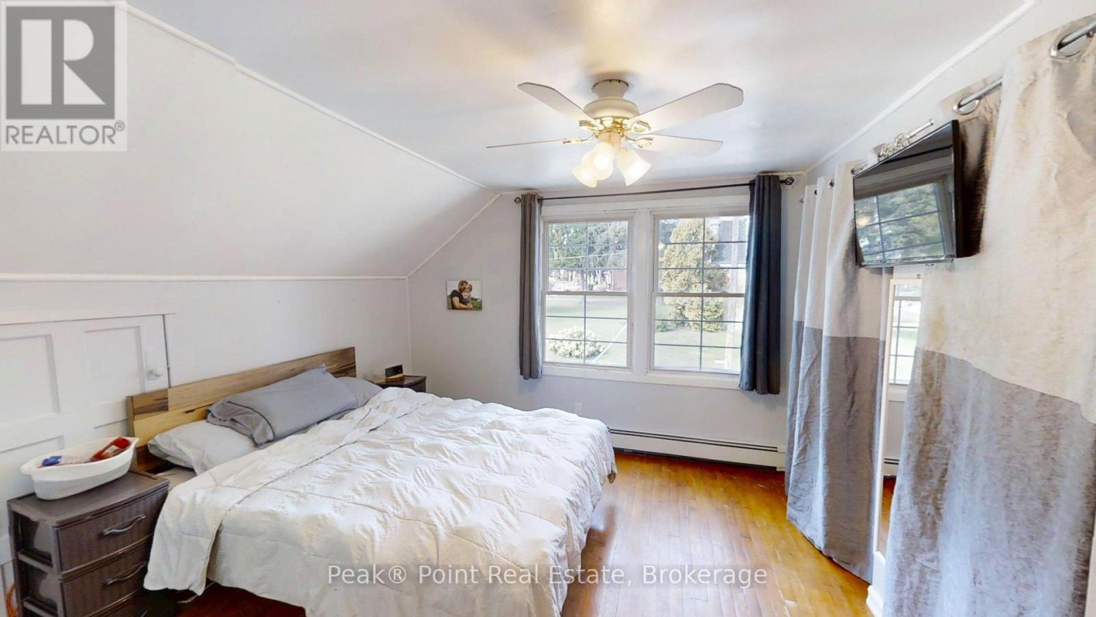 Looking for a Move-In Ready Owen Sound Home for Your Family? This quaint 1.5 storey Home is located on the west side of the city, tucked away on a lovely corner lot. The pretty front and side yards are great spaces for your kids to run and play. The mature hedging & partially fenced yard offer great visual yard boundaries. There is ample room for parking in the side/back driveway. There is a bonus detached garage/workshop which is a great space to putter, or for extra storage. Coming inside youll find the living space warm & welcoming. 3 Bed/1.5 Bath. The ground floor houses the main living areas. The kitchen is a highlight, featuring honey-colored wood cabinetry, nice appliances, and a unique custom coffee/food prep/serving station. Adjacent is a bright dining room with hardwood floors and a statement light fixture. The living room is spacious and inviting, with comfortable seating and lots of natural light from the large windows. A practical laundry room includes built-in storage and a washer/dryer set. The main floor bathroom showcases a mix of traditional and contemporary elements with a wooden vanity and tiled shower. The main floor bedroom is a great size and features built-in drawers & closet. The upstairs space accommodates two additional bedrooms + 2pc. Bath. The master bedroom is bright & has double closets. Throughout the home, hardwood floors, neutral wall colors, and rustic accents create a warm, cohesive, inviting atmosphere. The property's efficient layout and blend of modern amenities with charming details make it an appealing family home. The on-demand hot water heater & hot water rad heating make the utilities very economical & an added plus! (id:6418)