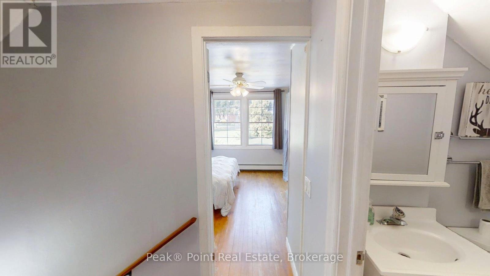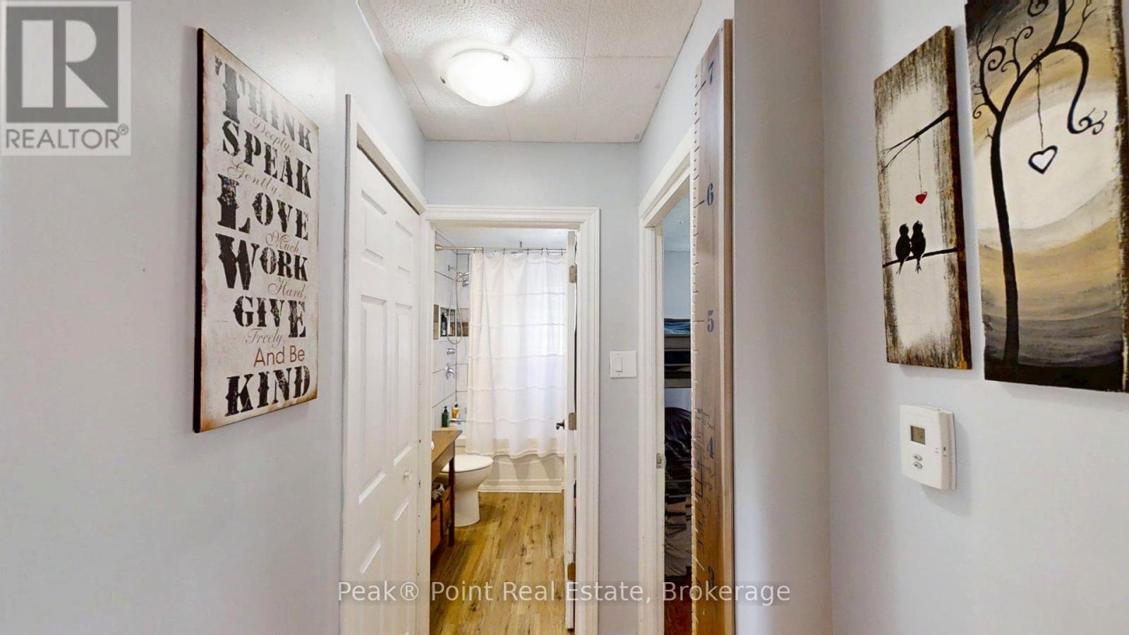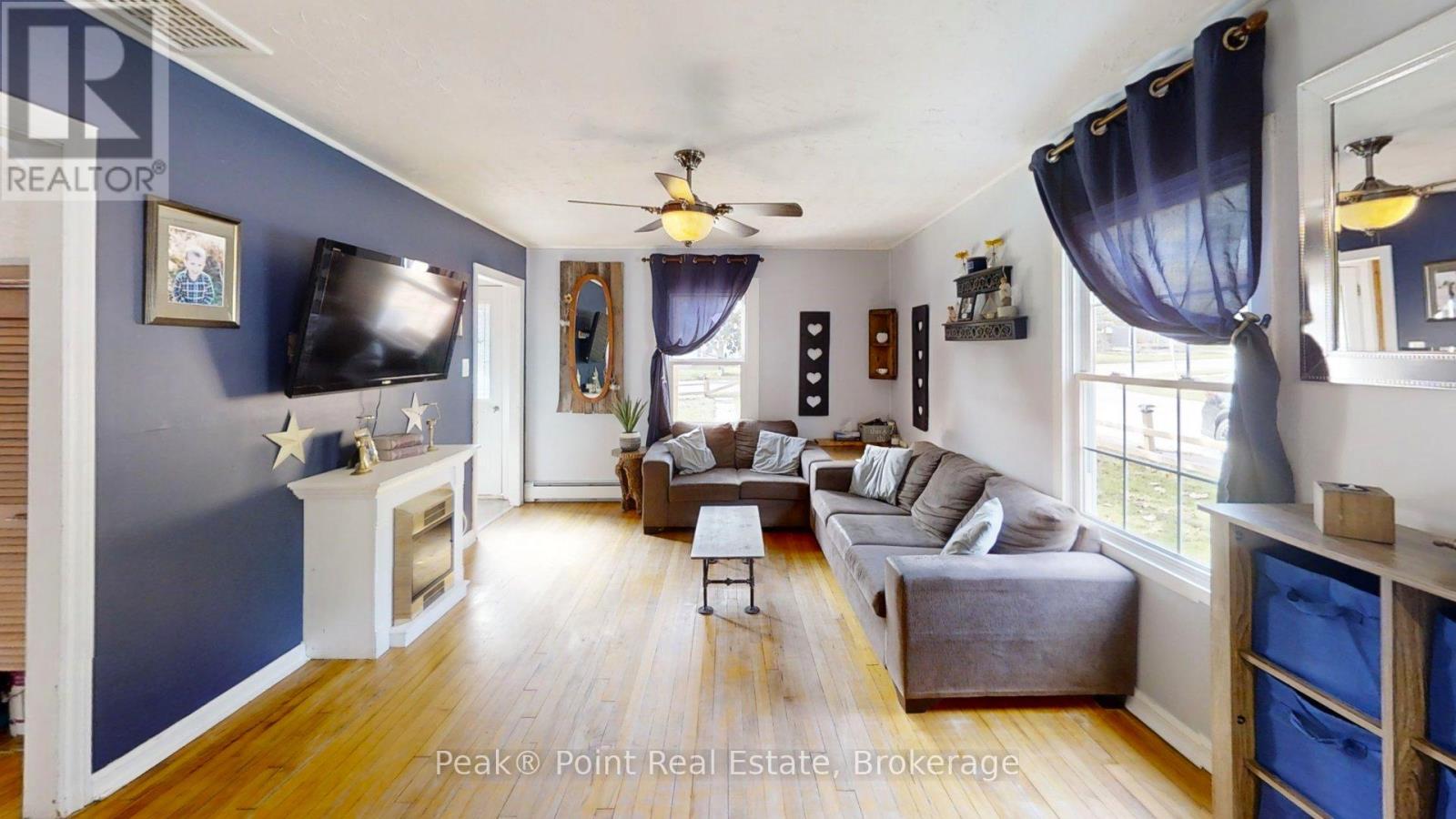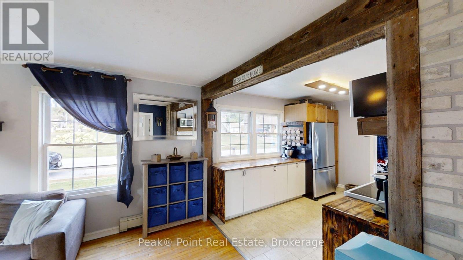 Looking for a Move-In Ready Owen Sound Home for Your Family? This quaint 1.5 storey Home is located on the west side of the city, tucked away on a lovely corner lot. The pretty front and side yards are great spaces for your kids to run and play. The mature hedging & partially fenced yard offer great visual yard boundaries. There is ample room for parking in the side/back driveway. There is a bonus detached garage/workshop which is a great space to putter, or for extra storage. Coming inside youll find the living space warm & welcoming. 3 Bed/1.5 Bath. The ground floor houses the main living areas. The kitchen is a highlight, featuring honey-colored wood cabinetry, nice appliances, and a unique custom coffee/food prep/serving station. Adjacent is a bright dining room with hardwood floors and a statement light fixture. The living room is spacious and inviting, with comfortable seating and lots of natural light from the large windows. A practical laundry room includes built-in storage and a washer/dryer set. The main floor bathroom showcases a mix of traditional and contemporary elements with a wooden vanity and tiled shower. The main floor bedroom is a great size and features built-in drawers & closet. The upstairs space accommodates two additional bedrooms + 2pc. Bath. The master bedroom is bright & has double closets. Throughout the home, hardwood floors, neutral wall colors, and rustic accents create a warm, cohesive, inviting atmosphere. The property's efficient layout and blend of modern amenities with charming details make it an appealing family home. The on-demand hot water heater & hot water rad heating make the utilities very economical & an added plus! (id:6418)