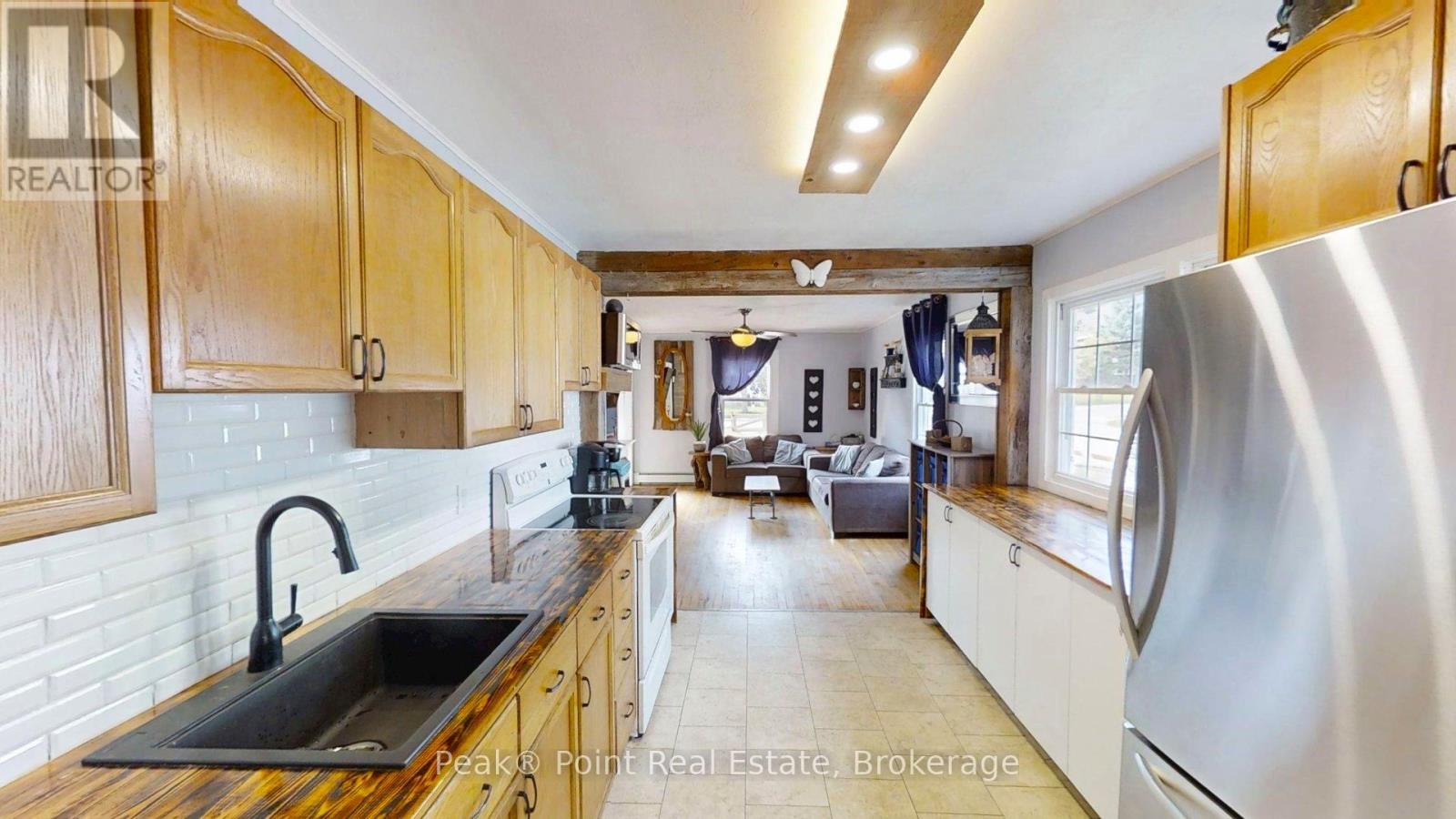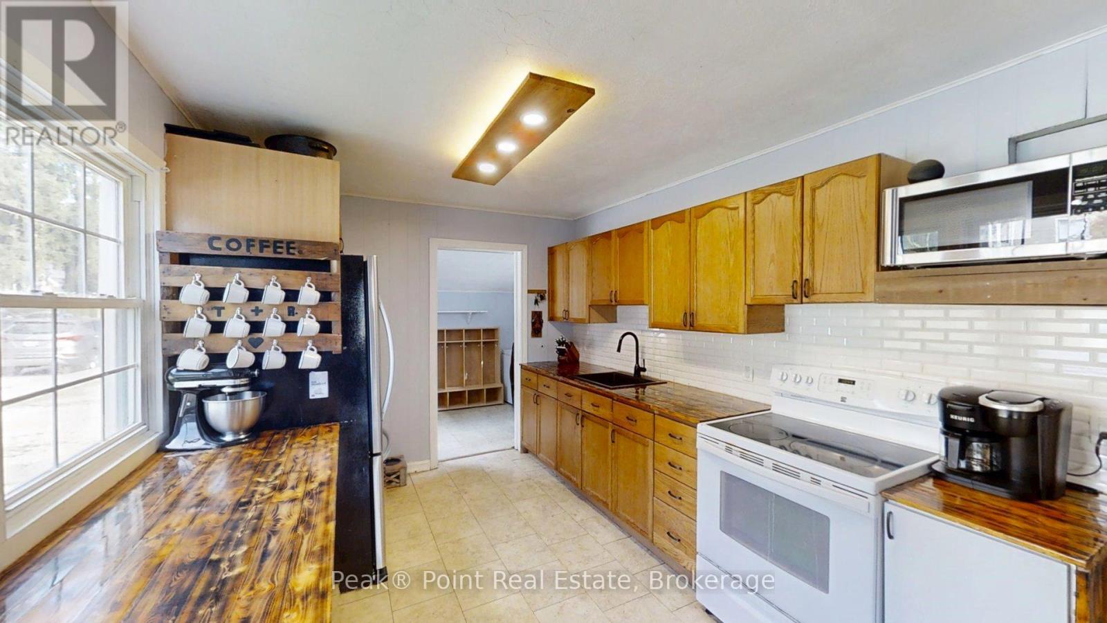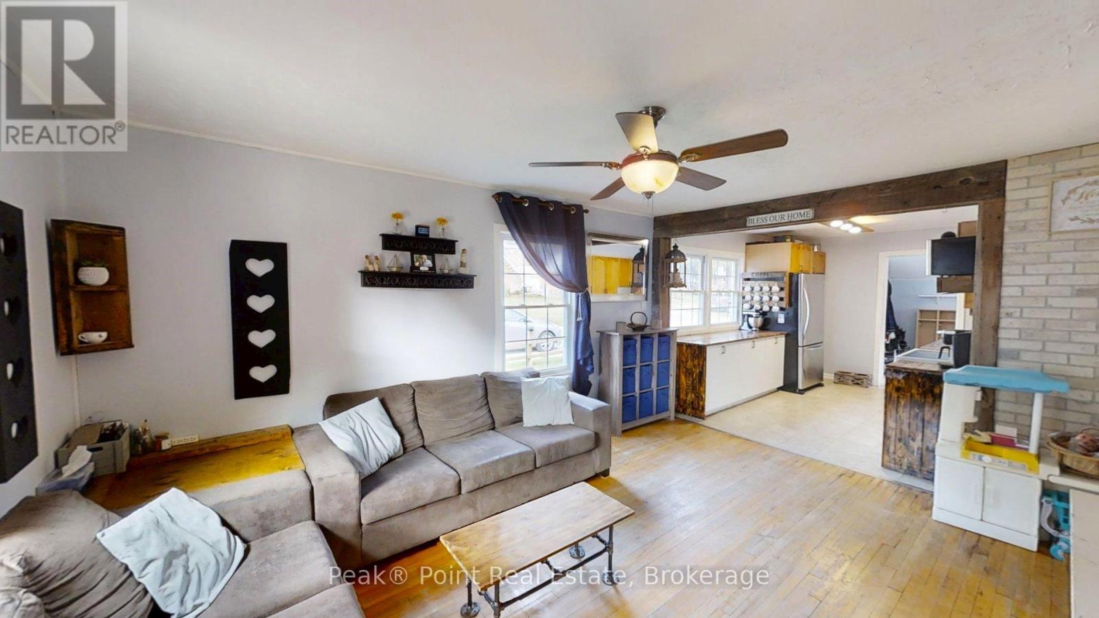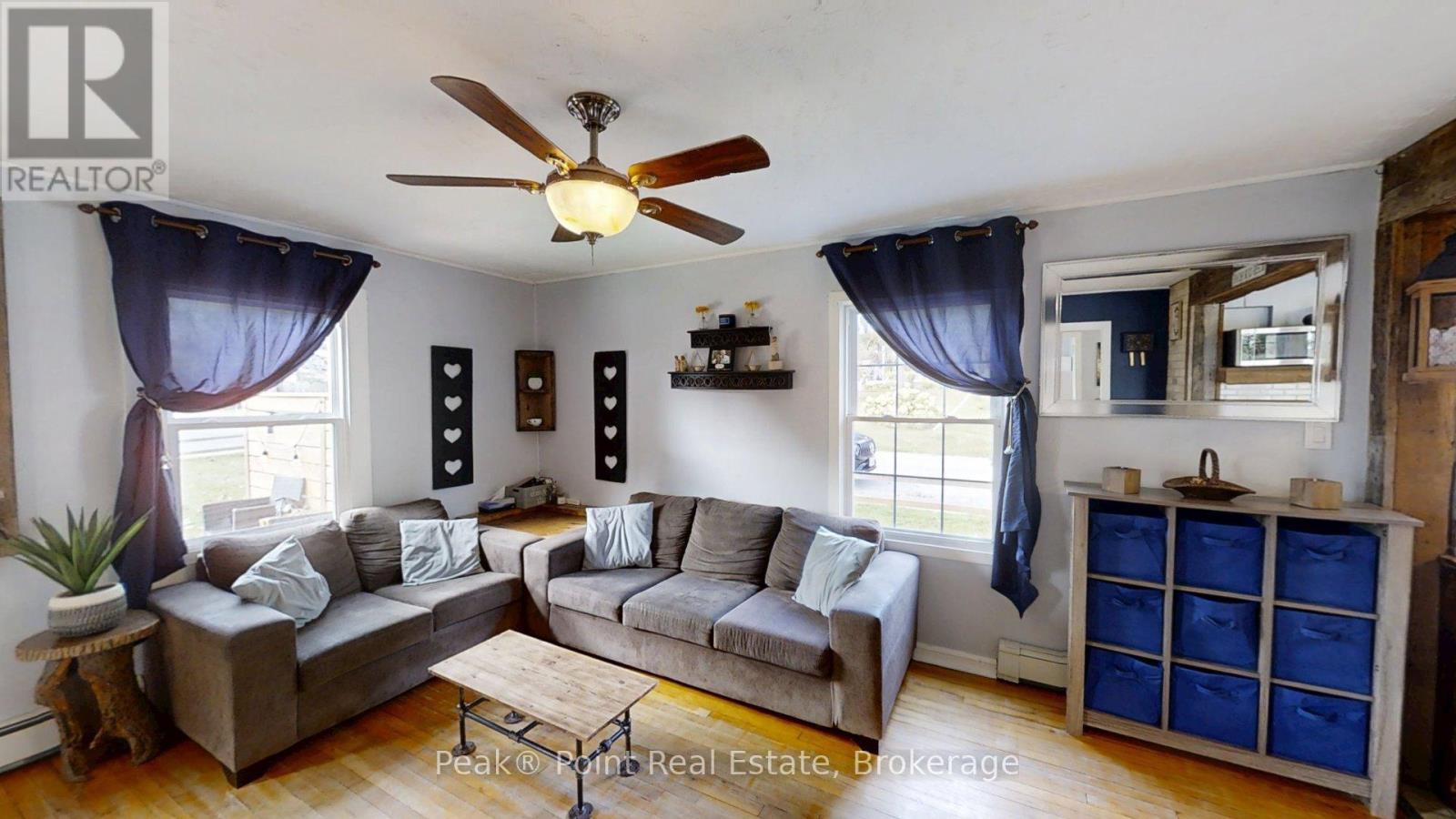 Looking for a Move-In Ready Owen Sound Home for Your Family? This quaint 1.5 storey Home is located on the west side of the city, tucked away on a lovely corner lot. The pretty front and side yards are great spaces for your kids to run and play. The mature hedging & partially fenced yard offer great visual yard boundaries. There is ample room for parking in the side/back driveway. There is a bonus detached garage/workshop which is a great space to putter, or for extra storage. Coming inside youll find the living space warm & welcoming. 3 Bed/1.5 Bath. The ground floor houses the main living areas. The kitchen is a highlight, featuring honey-colored wood cabinetry, nice appliances, and a unique custom coffee/food prep/serving station. Adjacent is a bright dining room with hardwood floors and a statement light fixture. The living room is spacious and inviting, with comfortable seating and lots of natural light from the large windows. A practical laundry room includes built-in storage and a washer/dryer set. The main floor bathroom showcases a mix of traditional and contemporary elements with a wooden vanity and tiled shower. The main floor bedroom is a great size and features built-in drawers & closet. The upstairs space accommodates two additional bedrooms + 2pc. Bath. The master bedroom is bright & has double closets. Throughout the home, hardwood floors, neutral wall colors, and rustic accents create a warm, cohesive, inviting atmosphere. The property's efficient layout and blend of modern amenities with charming details make it an appealing family home. The on-demand hot water heater & hot water rad heating make the utilities very economical & an added plus! (id:6418)