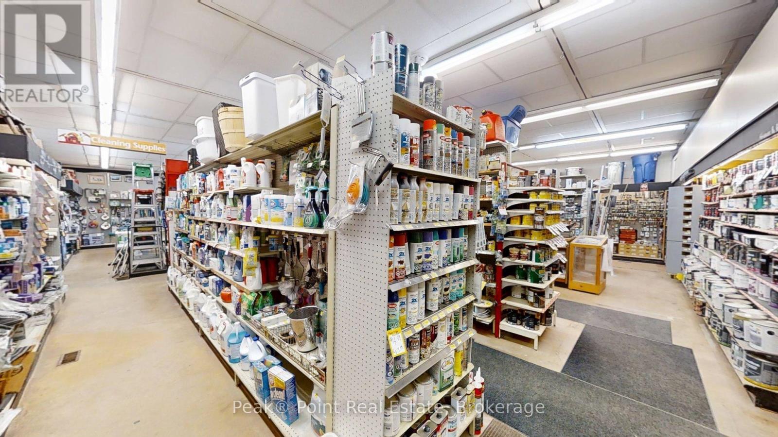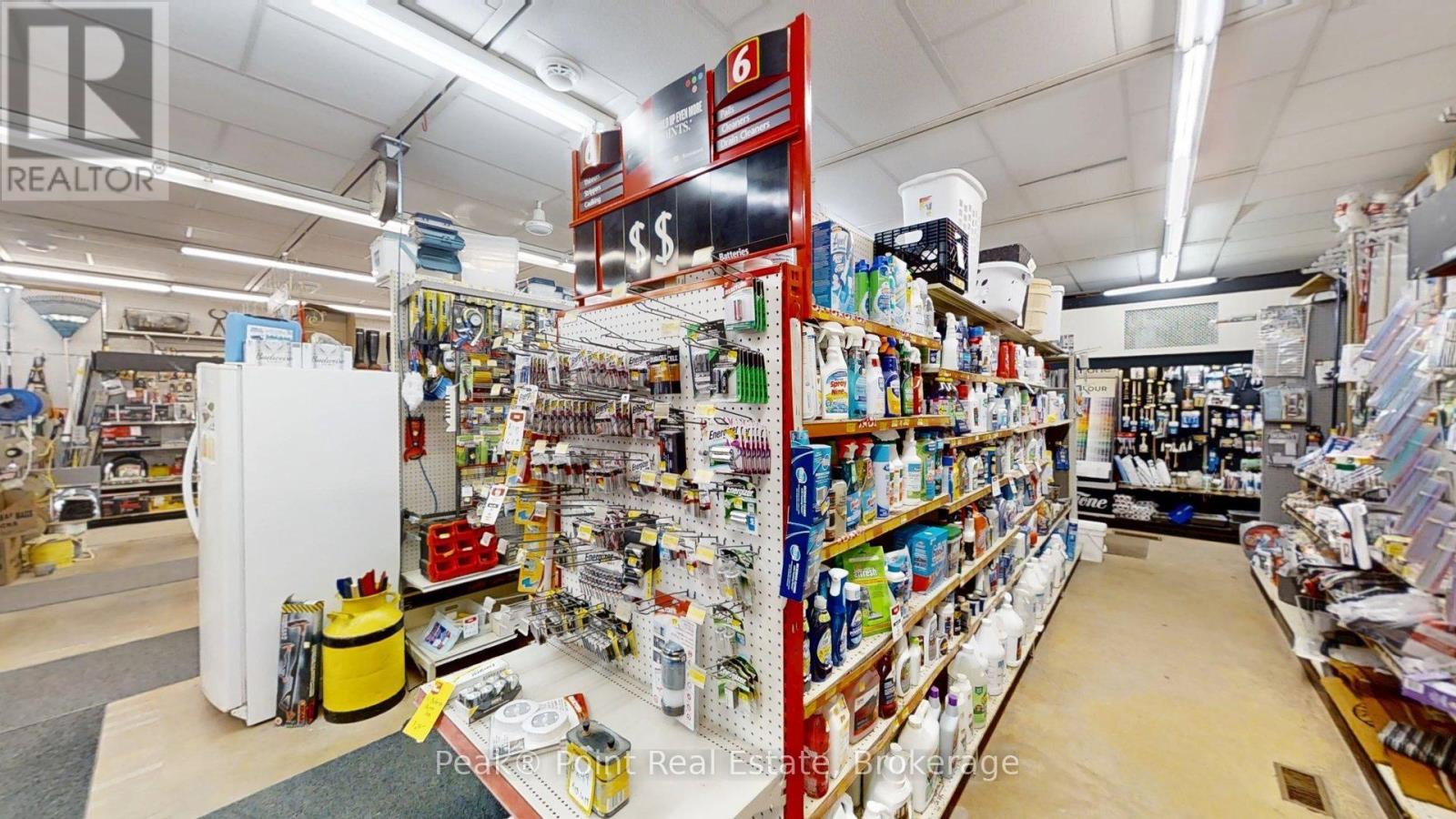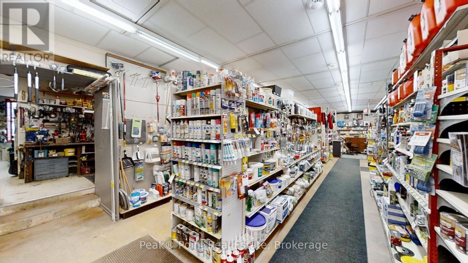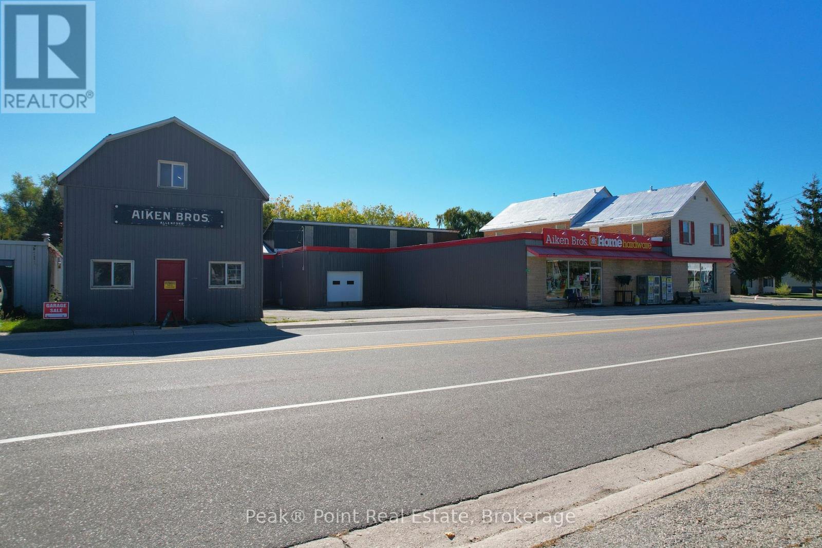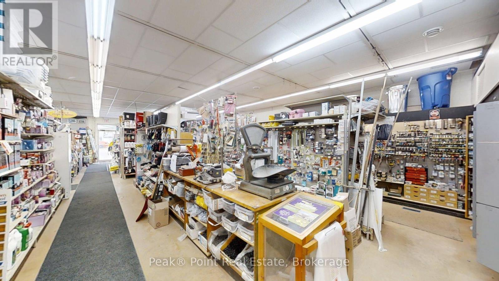 Looking for a Fantastic Commercial Opportunity? The Aiken Bros Hardware Store Property has been a focal point in the Village of Allenford since 1875. This neat commercial package offers Buildings & Land For Sale (contents could be negotiable). The central location on the busy, high traffic road of Hwy#21 offers great exposure for any type of business. Parking is available both in the parking lot and off the highway for easy access in and out for contractors and consumers alike. The main building features a large main floor retail space with wide aisles & well-organized shelving, fluorescent lighting illuminates the space & the suspended signage aids help navigation through various departments. There is a prominent service counter & open floor areas for equipment & seasonal merchandise. The industrial shelving & pegboards maximize the vertical space & efficiently showcase hardware & building materials. There are two main floor offices & a 2pc. bath. There is a a pull-in work bay on the main floor & this bay is connected to the large back warehouse. The concrete floors provide durability for heavy foot traffic and equipment movement. The back rooms & storage areas feature metal shelving units, wooden racks for lumber & long materials & designated spaces for inventory management. The bonus upstairs space is perfect for additional storage/office space. Economical Geothermal heating in the main building helps keep utility costs down. There is also an additional detached building which has been the Tin Shop for many years. This building features a ground floor + spacious attic space. The open layout of both floors have ample room for equipment, while worktables & various materials occupy the central space. The property's versatile layout allows for various uses, from continued retail & industrial application to potential conversion for other purposes, types of contractors, businesses and trades. (id:6418)