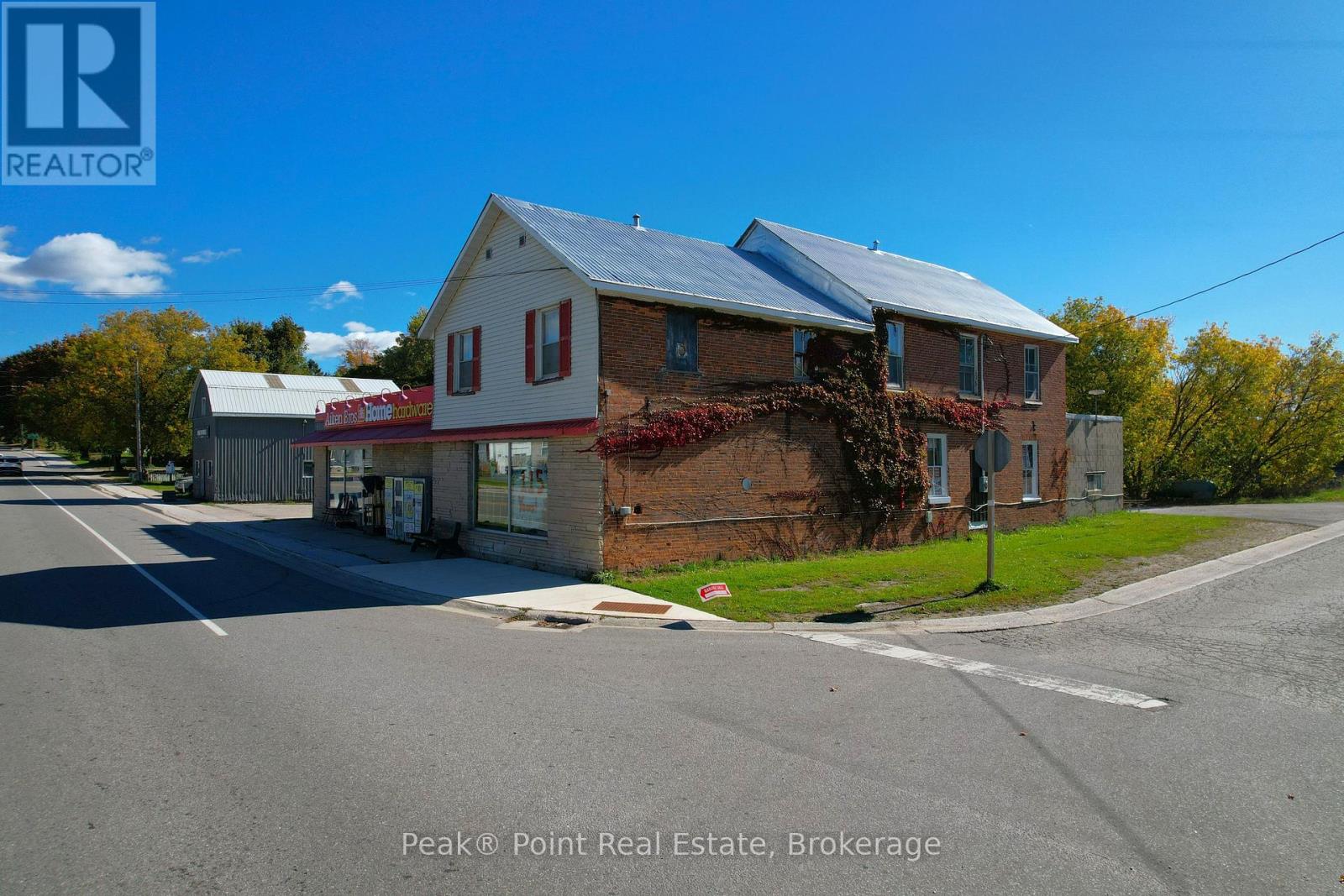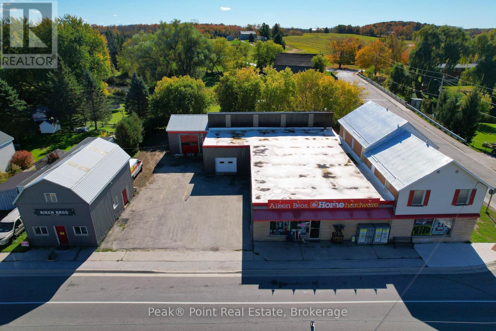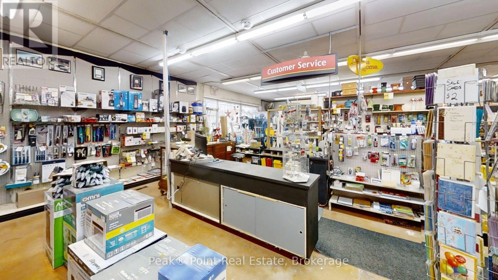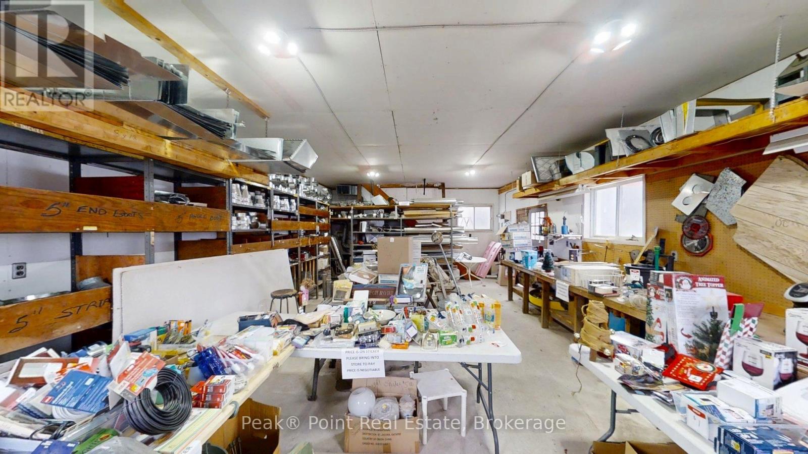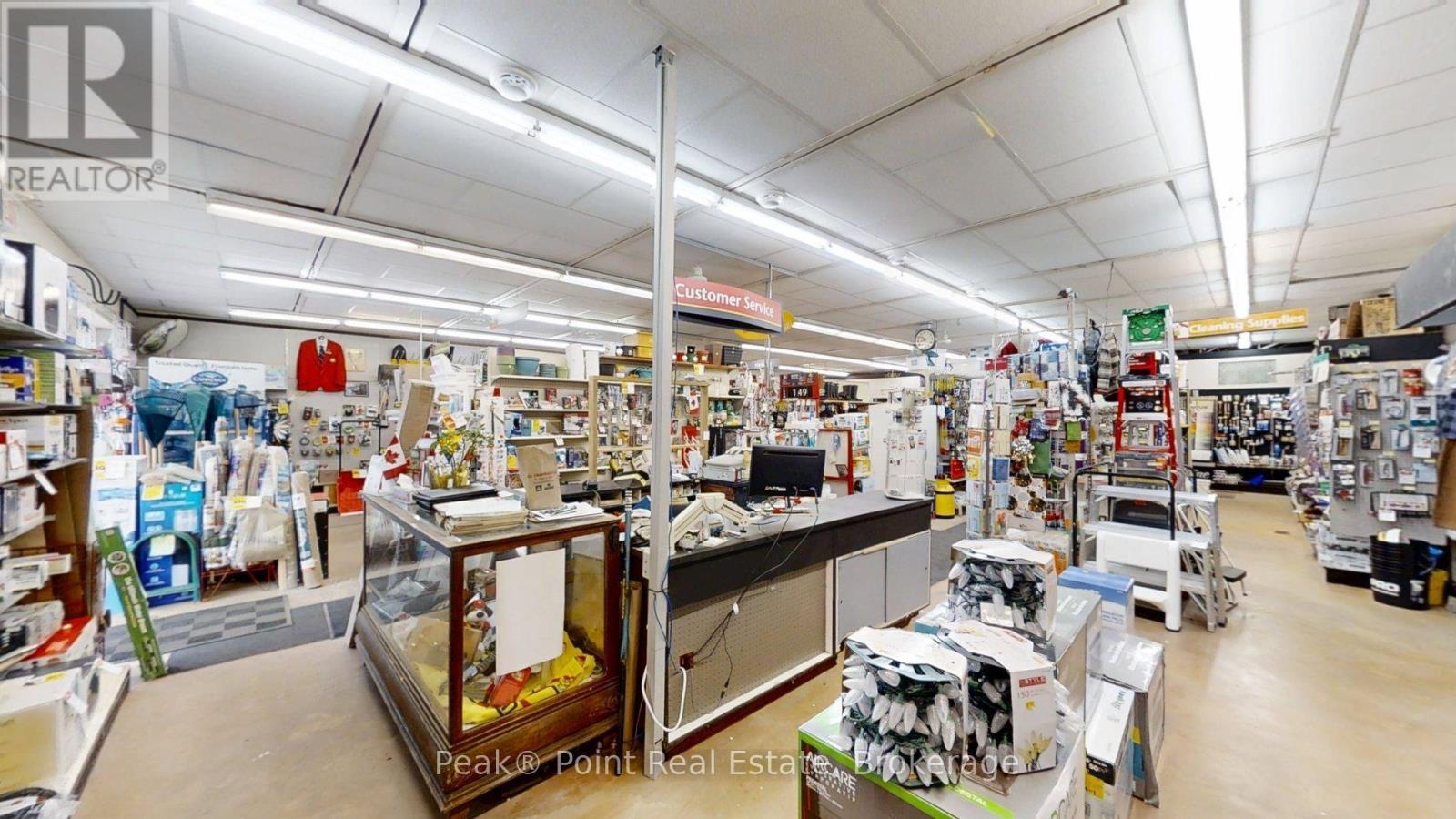 Looking for a Fantastic Commercial Opportunity? The Aiken Bros Hardware Store Property has been a focal point in the Village of Allenford since 1875. This neat commercial package offers Buildings & Land For Sale (contents could be negotiable). The central location on the busy, high traffic road of Hwy#21 offers great exposure for any type of business. Parking is available both in the parking lot and off the highway for easy access in and out for contractors and consumers alike. The main building features a large main floor retail space with wide aisles & well-organized shelving, fluorescent lighting illuminates the space & the suspended signage aids help navigation through various departments. There is a prominent service counter & open floor areas for equipment & seasonal merchandise. The industrial shelving & pegboards maximize the vertical space & efficiently showcase hardware & building materials. There are two main floor offices & a 2pc. bath. There is a a pull-in work bay on the main floor & this bay is connected to the large back warehouse. The concrete floors provide durability for heavy foot traffic and equipment movement. The back rooms & storage areas feature metal shelving units, wooden racks for lumber & long materials & designated spaces for inventory management. The bonus upstairs space is perfect for additional storage/office space. Economical Geothermal heating in the main building helps keep utility costs down. There is also an additional detached building which has been the Tin Shop for many years. This building features a ground floor + spacious attic space. The open layout of both floors have ample room for equipment, while worktables & various materials occupy the central space. The property's versatile layout allows for various uses, from continued retail & industrial application to potential conversion for other purposes, types of contractors, businesses and trades. (id:6418)