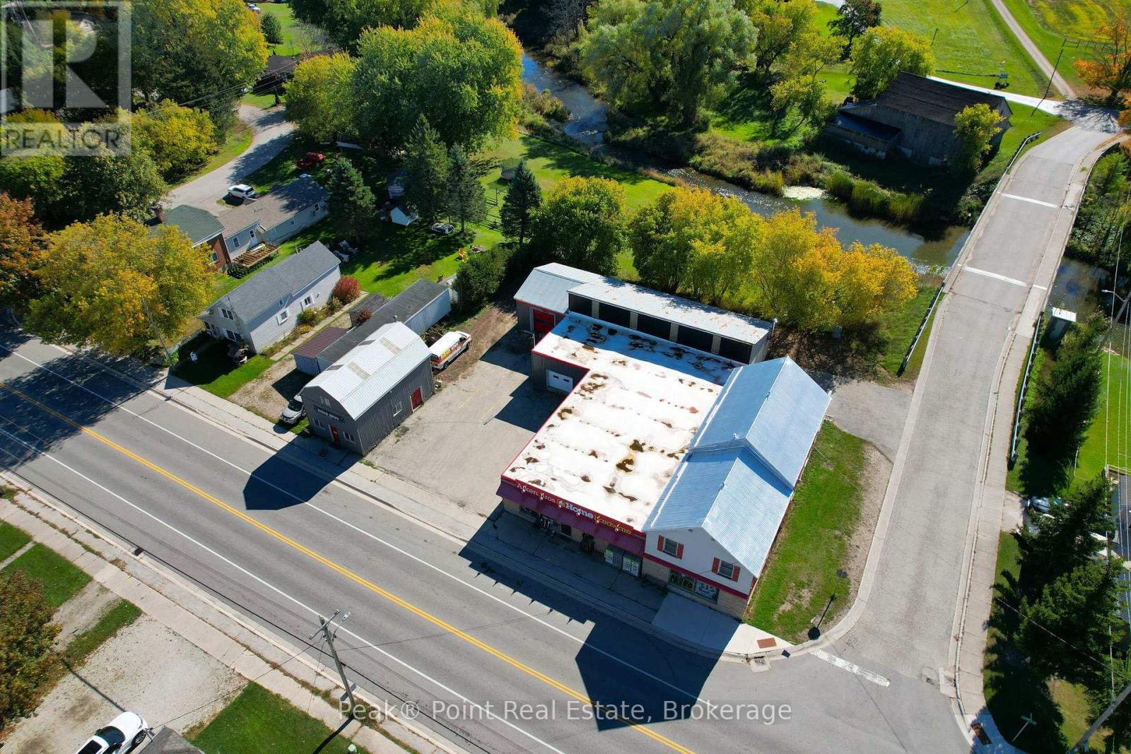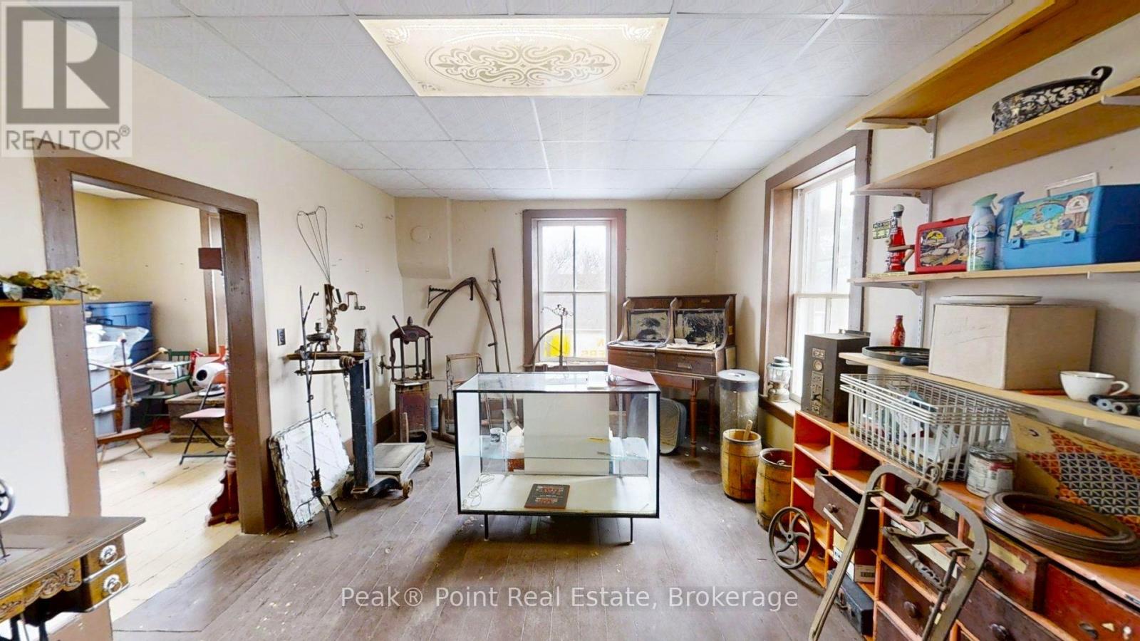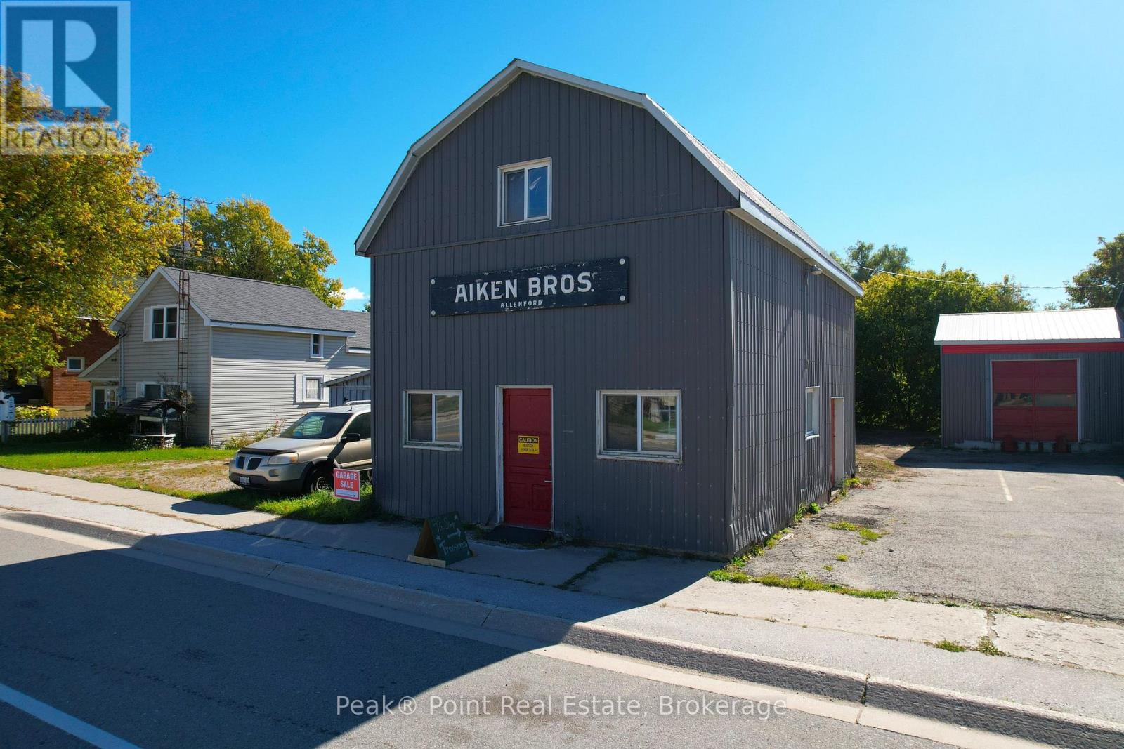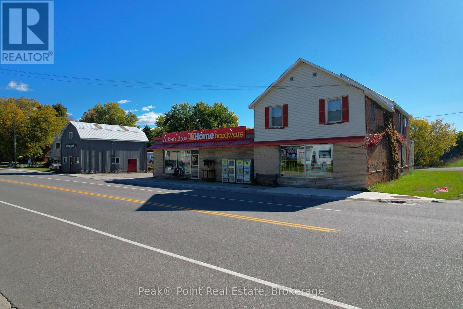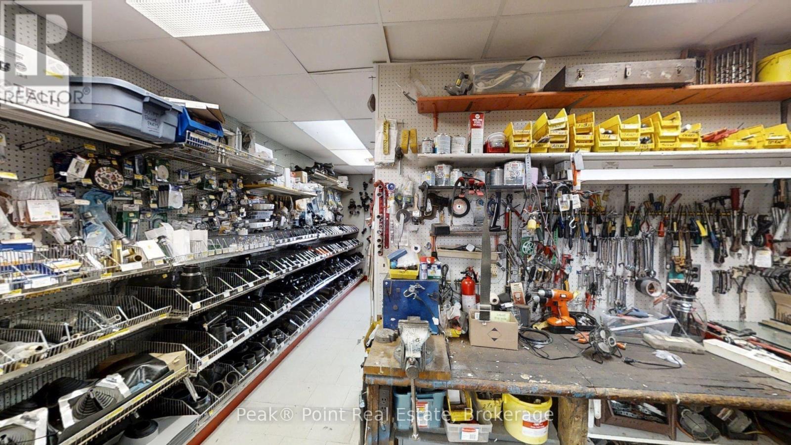 Looking for a Fantastic Commercial Opportunity? The Aiken Bros Hardware Store Property has been a focal point in the Village of Allenford since 1875. This neat commercial package offers Buildings & Land For Sale (contents could be negotiable). The central location on the busy, high traffic road of Hwy#21 offers great exposure for any type of business. Parking is available both in the parking lot and off the highway for easy access in and out for contractors and consumers alike. The main building features a large main floor retail space with wide aisles & well-organized shelving, fluorescent lighting illuminates the space & the suspended signage aids help navigation through various departments. There is a prominent service counter & open floor areas for equipment & seasonal merchandise. The industrial shelving & pegboards maximize the vertical space & efficiently showcase hardware & building materials. There are two main floor offices & a 2pc. bath. There is a a pull-in work bay on the main floor & this bay is connected to the large back warehouse. The concrete floors provide durability for heavy foot traffic and equipment movement. The back rooms & storage areas feature metal shelving units, wooden racks for lumber & long materials & designated spaces for inventory management. The bonus upstairs space is perfect for additional storage/office space. Economical Geothermal heating in the main building helps keep utility costs down. There is also an additional detached building which has been the Tin Shop for many years. This building features a ground floor + spacious attic space. The open layout of both floors have ample room for equipment, while worktables & various materials occupy the central space. The property's versatile layout allows for various uses, from continued retail & industrial application to potential conversion for other purposes, types of contractors, businesses and trades. (id:6418)