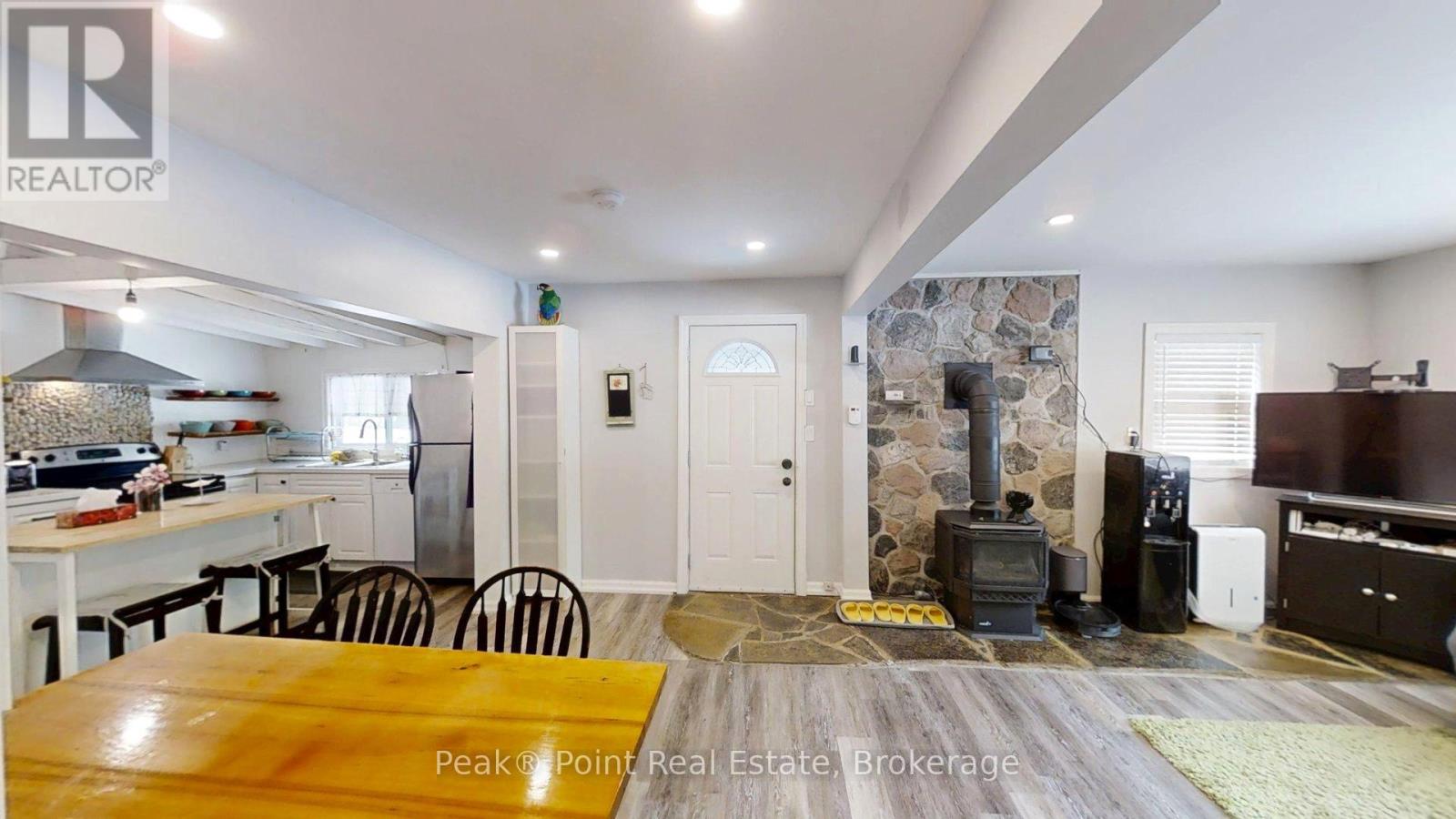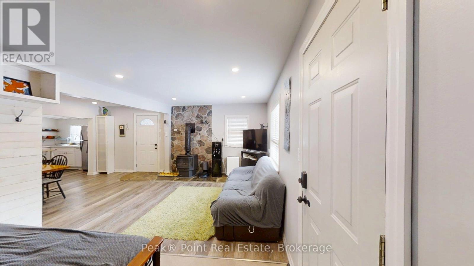 Dreaming of a lifestyle near the Lake? This charming four-season bungalow is located just north of Wiarton, Ontario in the beautiful Community by Berford Lake. Whether you desire a place for full-time living or a year-round cottage to get away to-you won't be disappointed! There are a ton of recreational activities close by to enjoy in any season! If you love kayaking, canoeing & swimming this is a perfect spot for you! The property is less than a 5-minute walk down the street to the public access at Berford Lake! Look forward to enjoying long summer days on the Lake & short walks home to enjoy campfires & starry night skies.The home is nestled on a lot that is quite private. There are nice trees, low maintenance shrubs & perennial flowers. The back yard has a lovely patio & firepit area to enjoy. The detached garage is a bonus & is a great spot for storing tools and toys. Coming inside you'll find that the living space has been thoughtfully designed & flows well. The home features 3 Bedrooms + 2 renovated bathrooms. The main bathroom is a 4pc w/tub-shower combo + large linen closet. It is located just off the kitchen. The master bedroom is big & features patio doors to back yard, a large closet, private access to the new 3pc. bath addition w/lovely custom shower, as well as easy access to the utility & laundry room. The interior showcases a harmonious blend of contemporary & rustic design elements. L.E.D. lighting throughout ensures bright, welcoming ambiance. A standout feature is the stone-faced wall with propane stove, adding both character & functionality to this space.The kitchen is updated with nice cupboards, modern appliances, new dishwasher, & ample counter space. The dining room features a substantial wooden table, perfect for family gatherings. Built-in shelving and storage solutions, such as the entryway coat hooks, maximize the use of space. This renovated bungalow strikes a balance between cozy family living & modern convenience. Move-in ready! (id:6418)